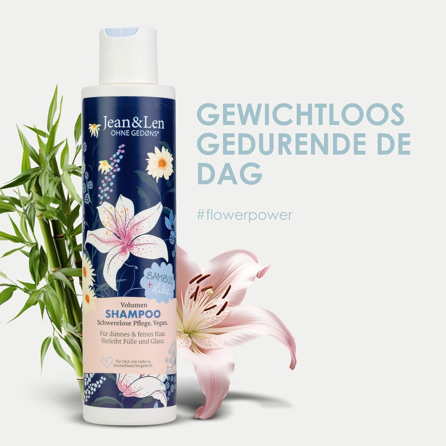 Jean & Len Shampoo Volume Bamboo & Lily, voor dun en fijn haar, geeft volheid en glans, bloemengeur, zonder parabenen en siliconen, veganistisch, 300 ml