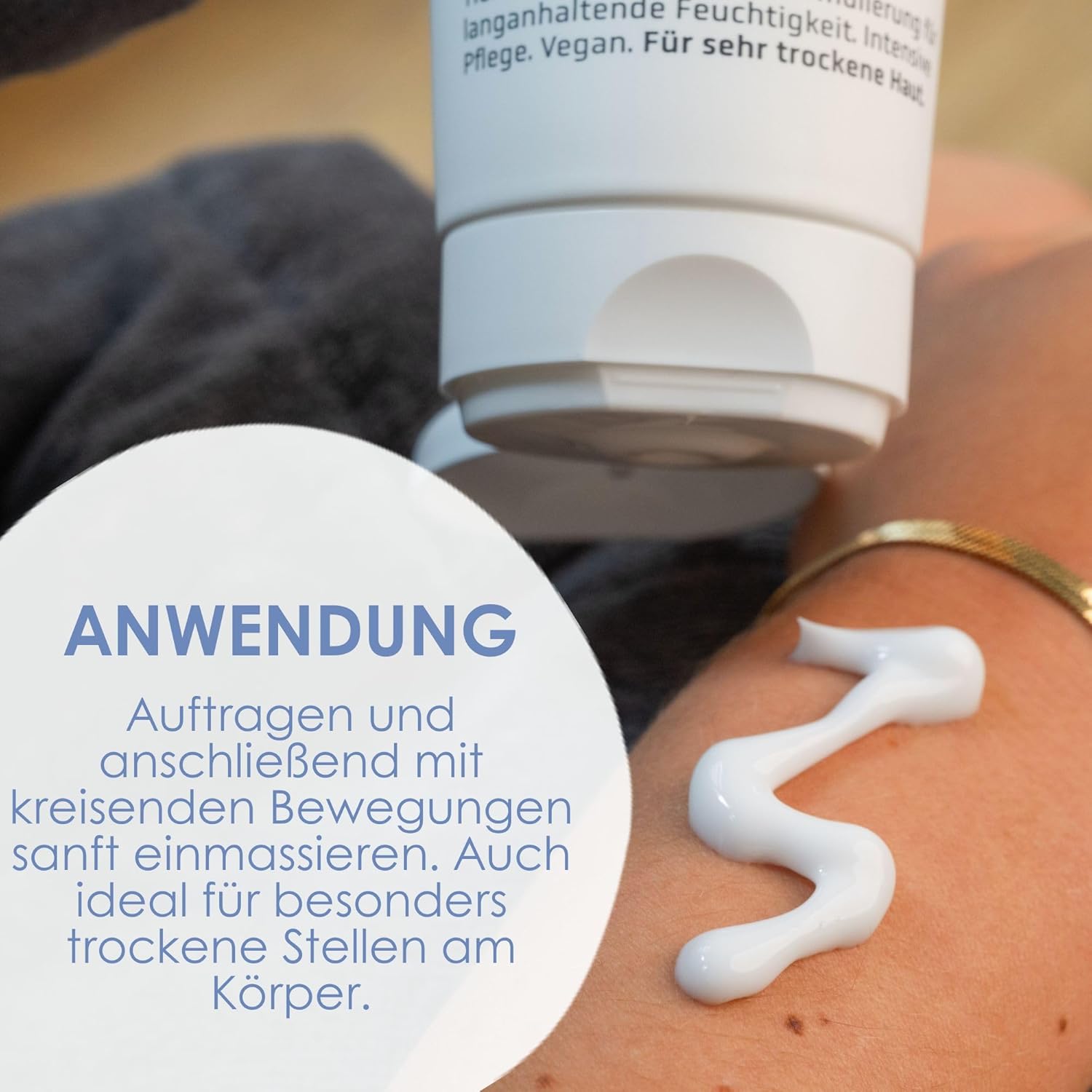 Ultieme rijkdom voor de zeer droge huid met een effectief 48-uurs diep verzorgend complex: In totaal 10% glycerine, ureum, panthenol en allantoïne ondersteunen de natuurlijke beschermingsbarrière van de huid en zorgen voor langdurige hydratatie. Gevoelens van trekkerigheid, ruwheid en schilferige huidplekken worden verlicht. Het resultaat: een merkbaar gekalmeerde