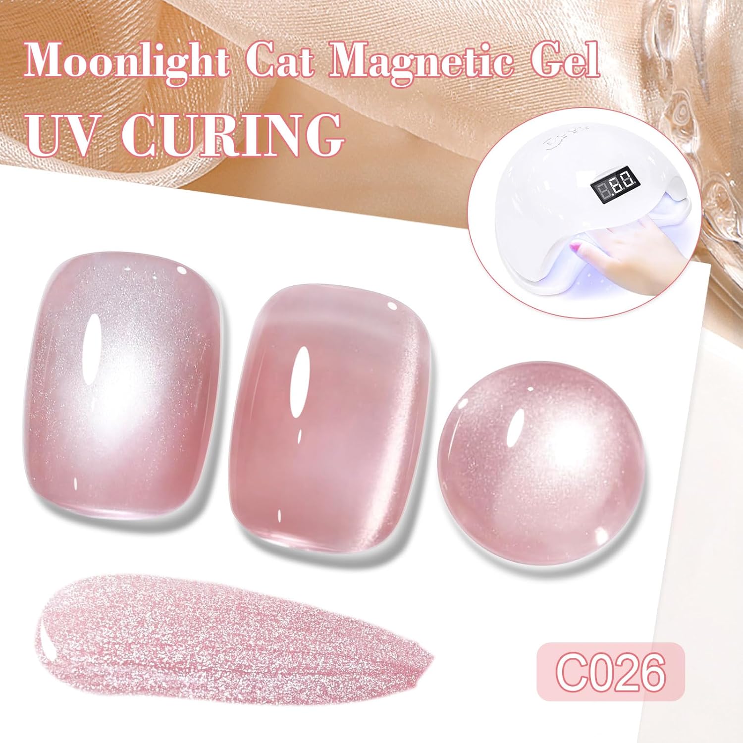 Jelly Cat Eye Gel Polish, 15ml Klassieke Kristal Roze Gel Nail Polish Set Met Magneet,Transparant Gellak Soak-Off UV Nagellak voor Beginner Nail Art Salon Lente Zomer, 1PCS
