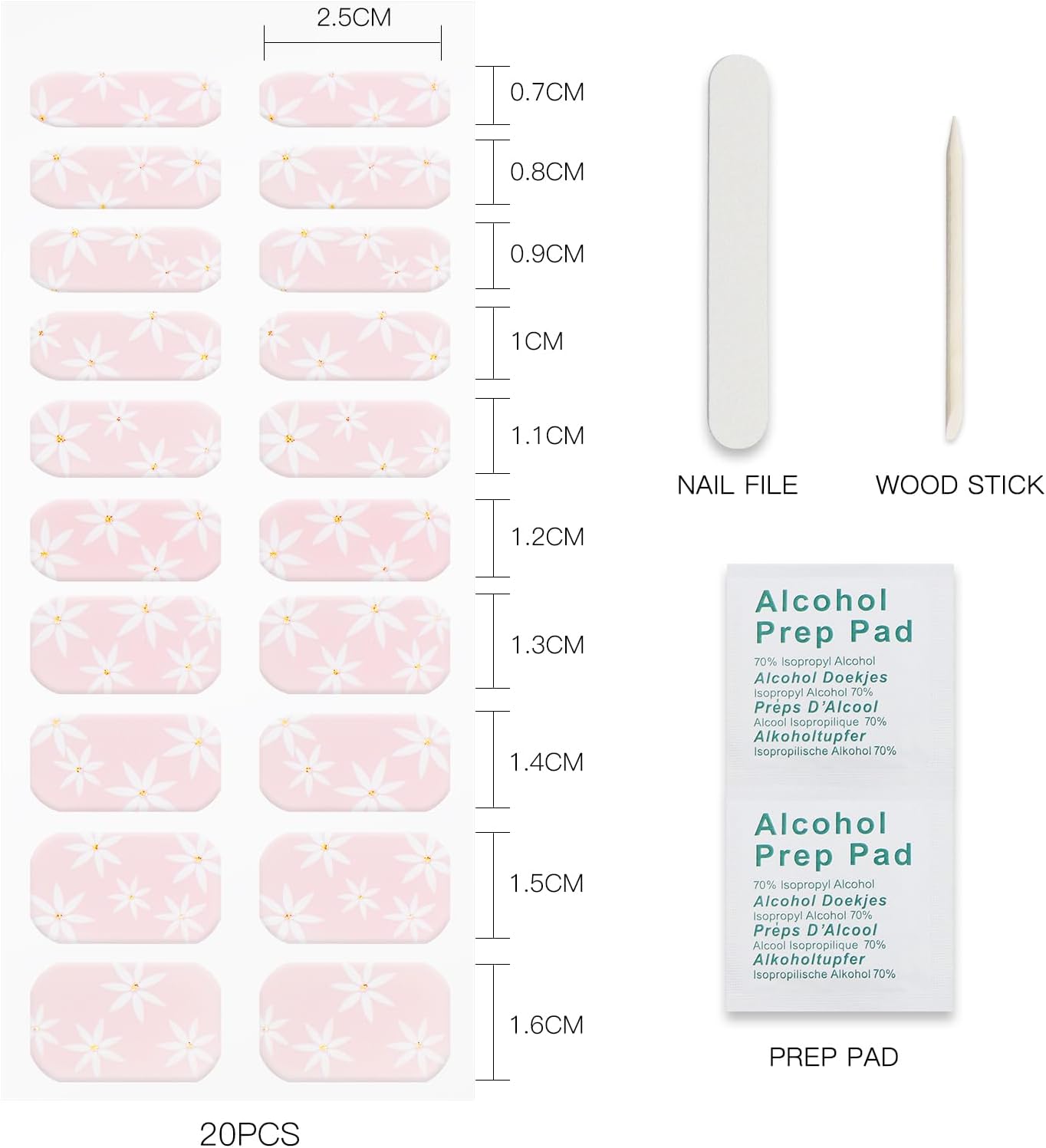 Package includes: 20 Polish Nail Strips, 1 wooden stick, 1 nail file