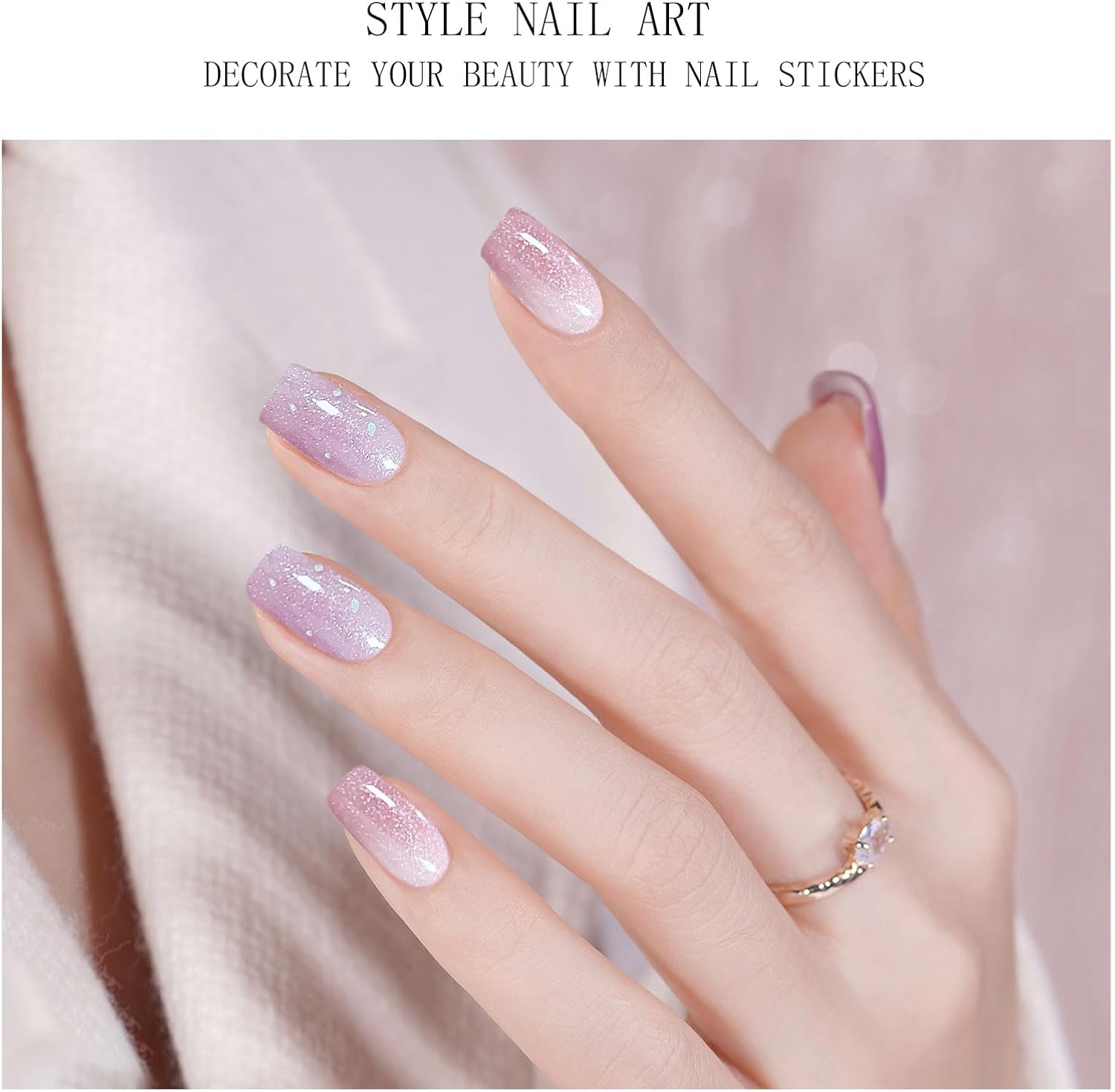 JMEOWIO Glitter Roze Paars Nagelfolie UV Gel Nail Art Sticker Nagelsticker Selbstklebend Nagel Decoratie