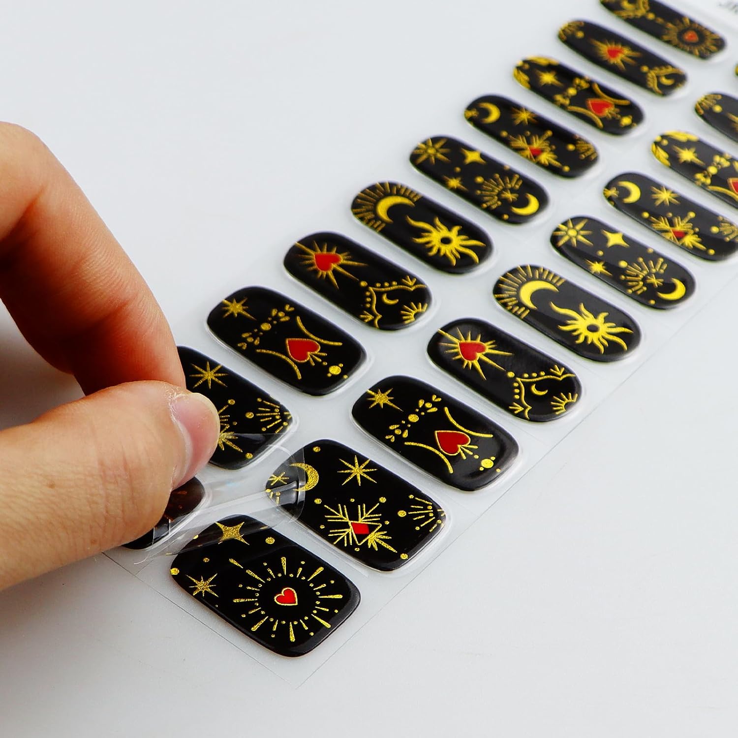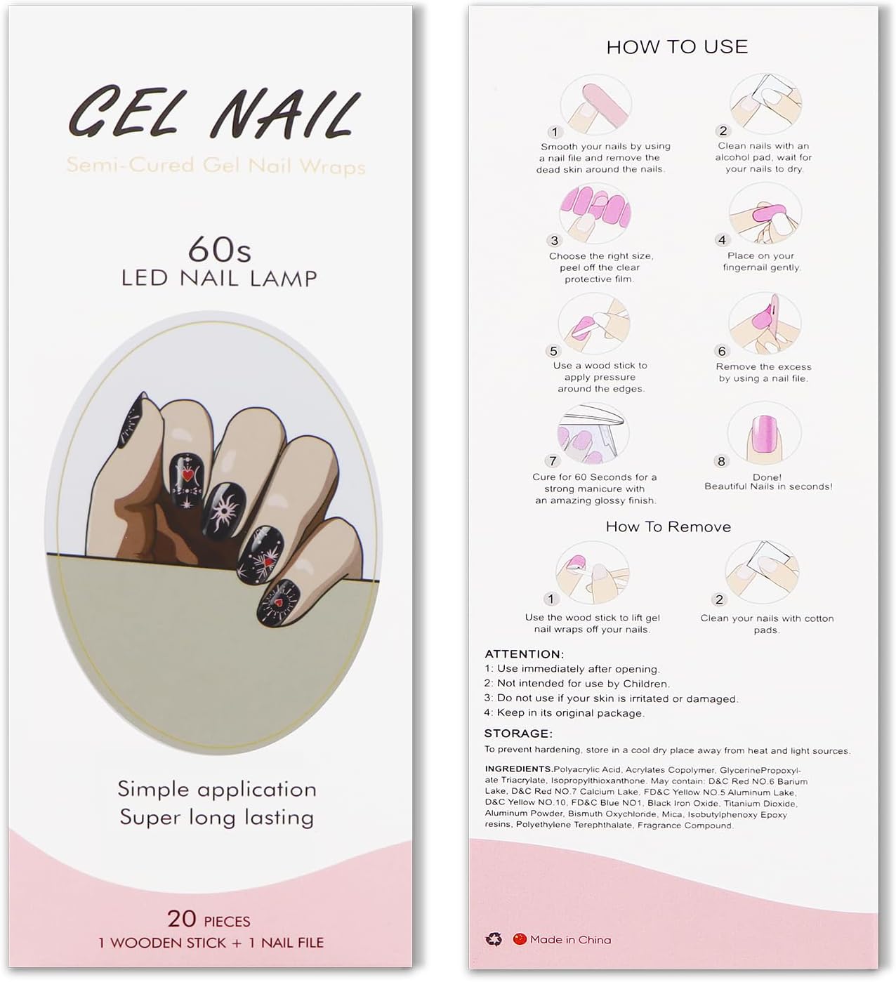Semi-uitgeharde gelnagelstickers: gemaakt van echte gelnagellak en 60% van tevoren uitgehard, gaan tot 2 weken mee als ze volledig zijn uitgehard onder een UV/LED-lamp, en zijn comfortabel om te dragen, duurzaam, niet-giftig, onschadelijk, veilig