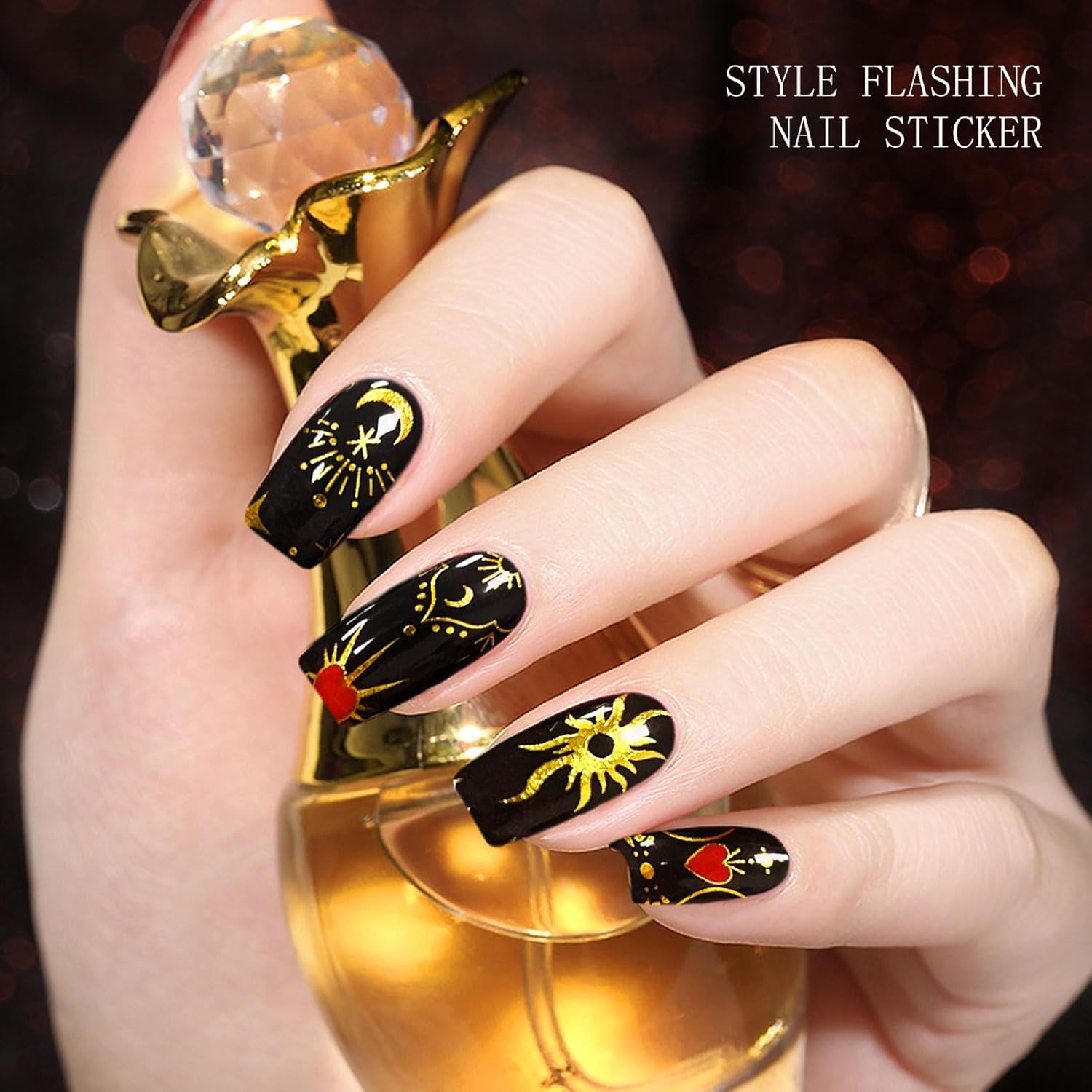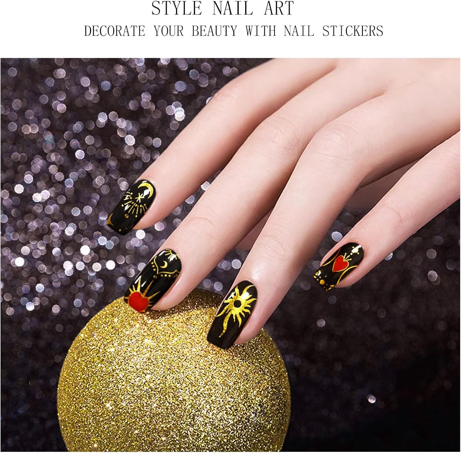 JMEOWIO Maan Ster Zwart Nagelfolie UV Gel Nail Art Sticker Nagelsticker Selbstklebend Nagel Decoratie