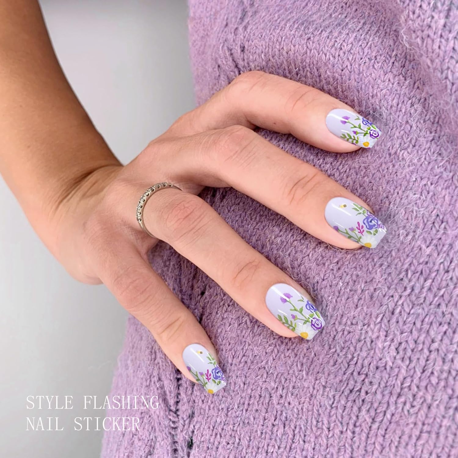 JMEOWIO Purple Flower Nail Foil UV Gel Nail Art Sticker Nail Sticker Selbstklebend Nail Decoration