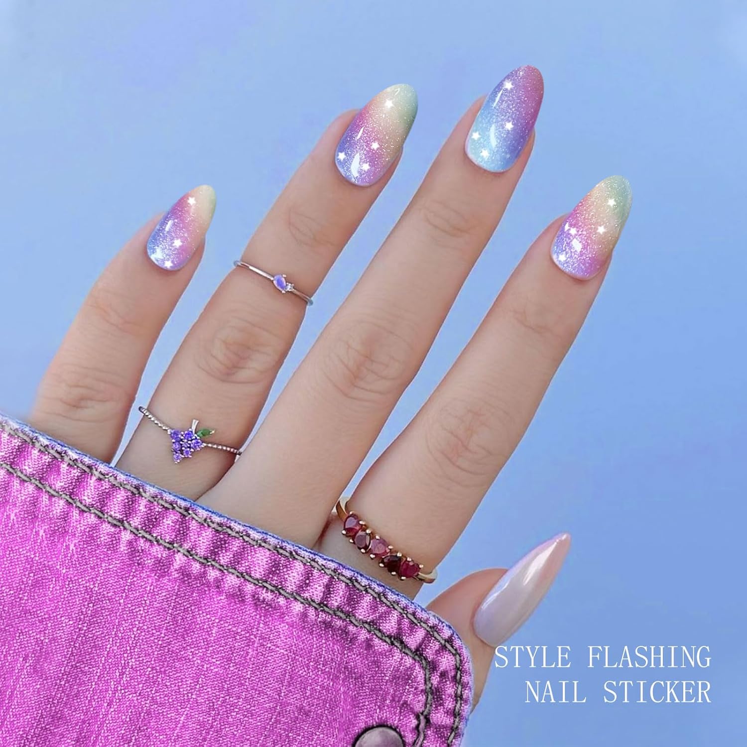 JMEOWIO Rainbow Glitter Nail Foil UV Gel Nail Art Sticker Nail Sticker Selbstklebend Nail Decoration