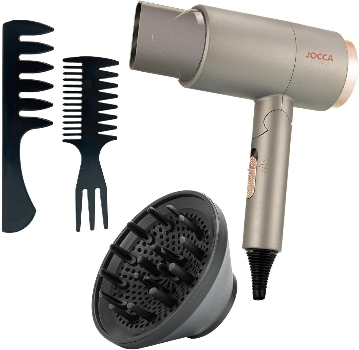 JOCCA – Opvouwbare haardroger met diffuser en kammen inclusief/vermogen 2000 W/gelijkstroommotor/3 temperaturen en 2 snelheden/diffuser en 2 kammen