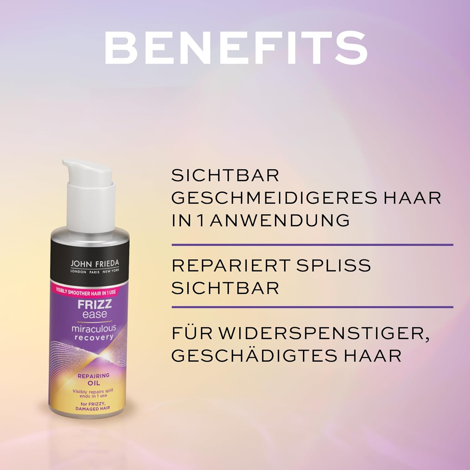 John Frieda Frizz Ease Haarolie – Wunder Repair Serie – Inhoud: 100 ml – Anti-kroes effect – Haartype: weerbarstig, frizzy, beschadigd, beschadigd