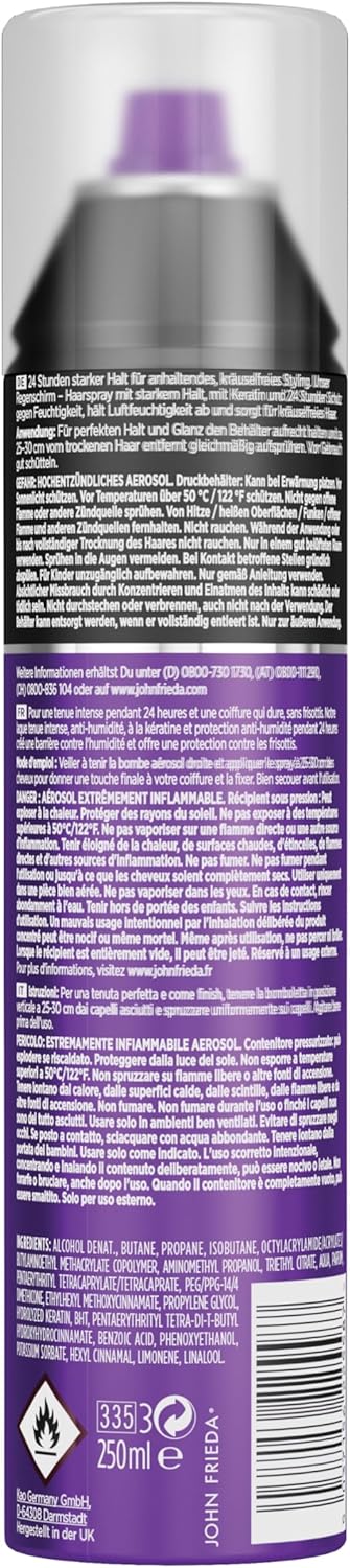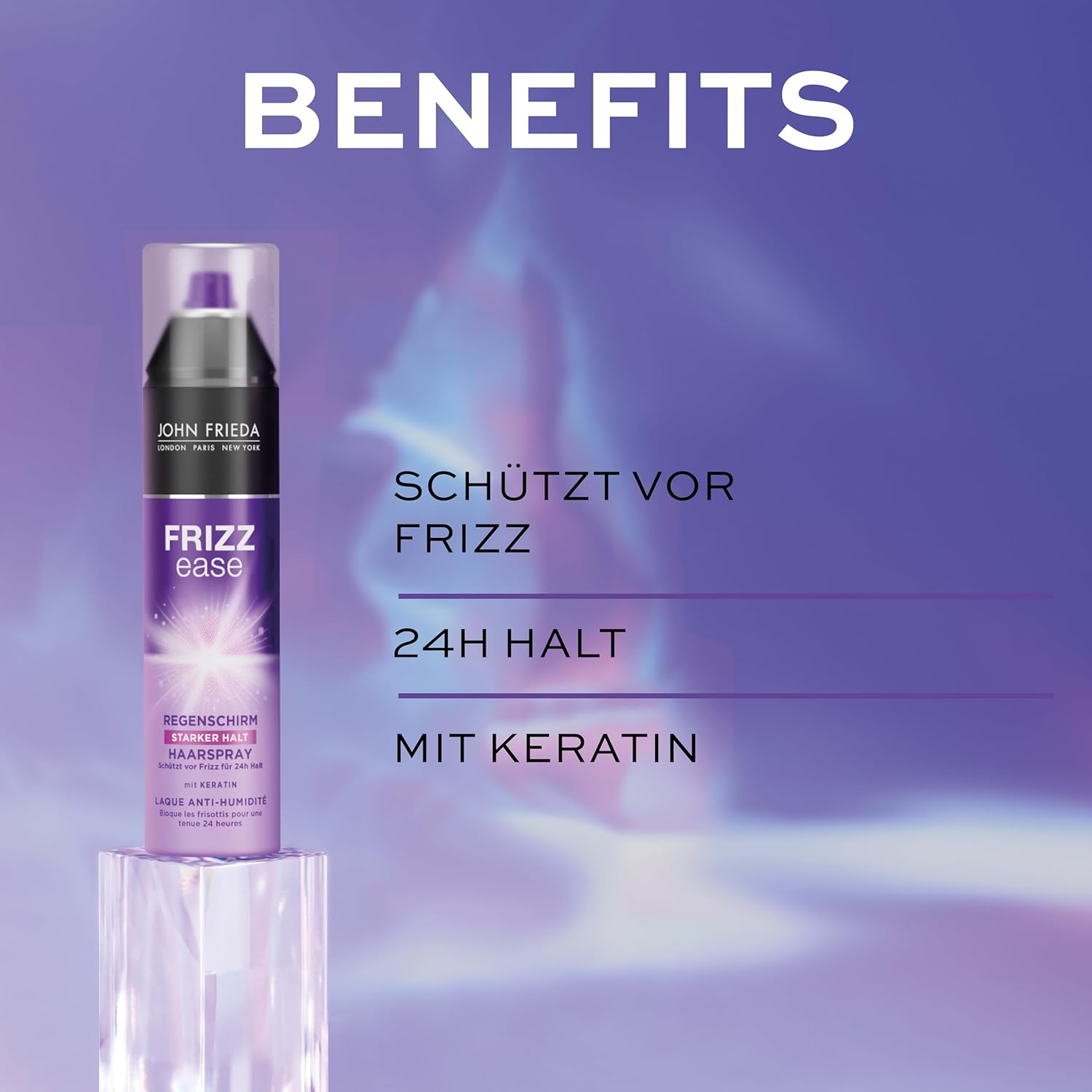 John Frieda Frizz Ease Paraplu haarspray – per stuk verpakt (1 x 250 ml) – 24 uur bescherming tegen vocht – haarspray voor weerbarstig haar – met keratine