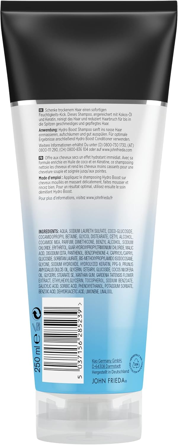 John Frieda Hydro Boost Shampoo – Inhoud: 250 ml – Haartype: droog, broos – Intensieve dieptevochtigheid