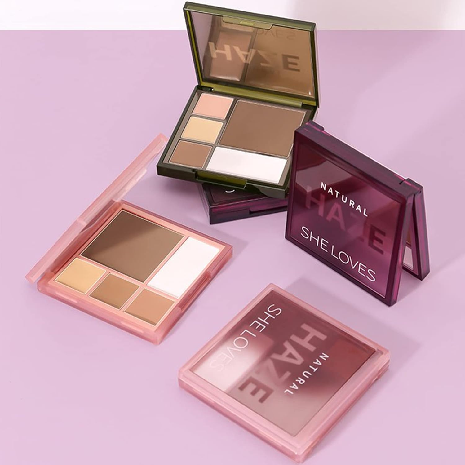Cream Contouring Makeup: Highlight or lowlight based on your facial features and needs. The cream concealer palette works well to correct uneven skin tones.