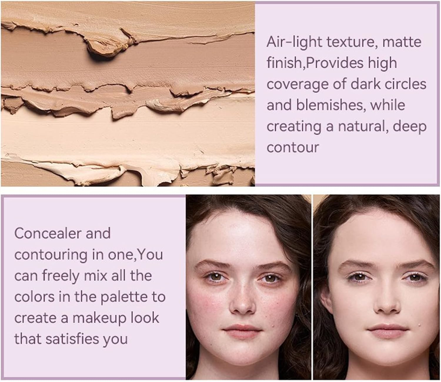 Cream Contour Palette: The multifunctional contour kit can create contouring, concealer, brightening and three-dimensional makeup. Long lasting, water resistant and natural, suitable for shopping/parties.