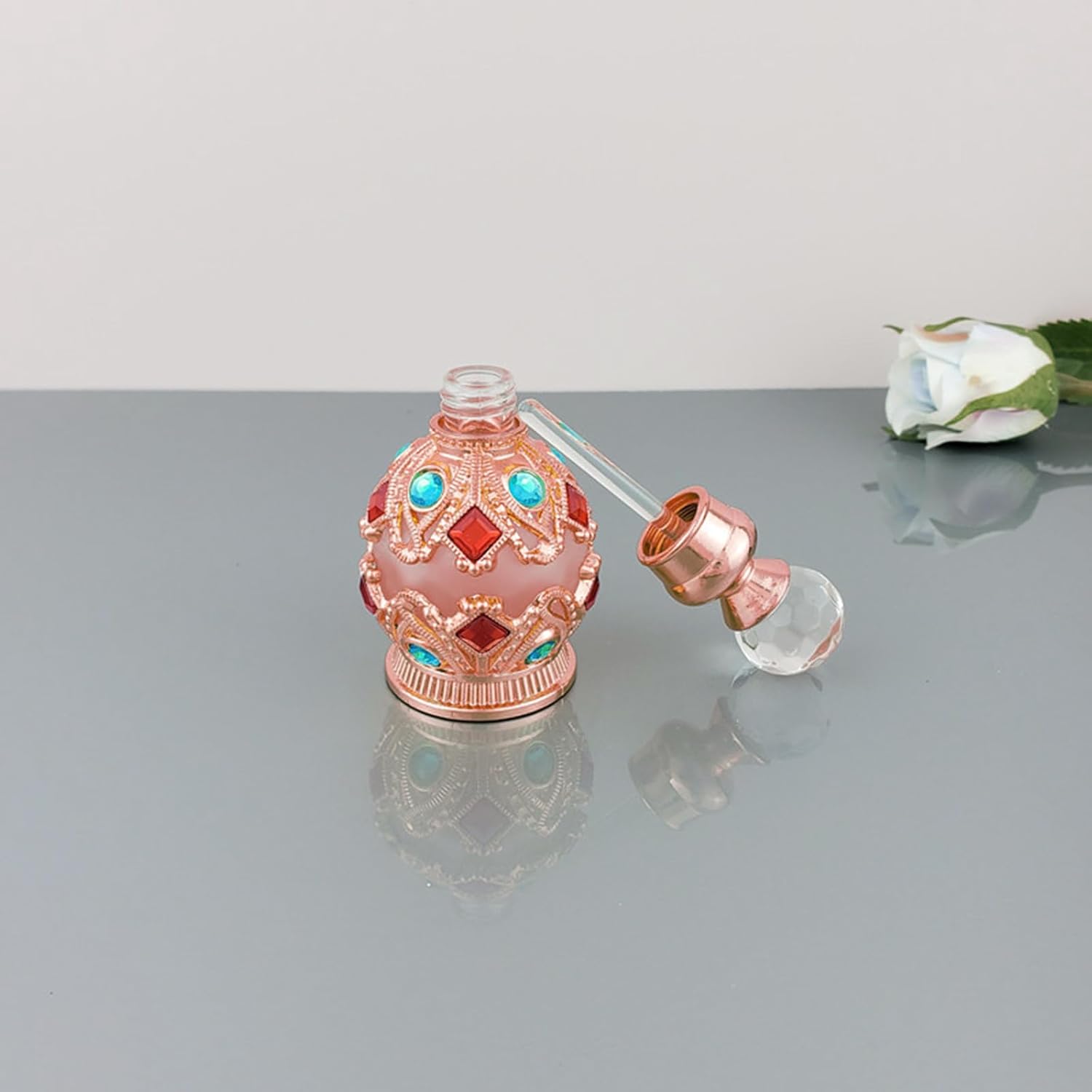 Het metalen holle ontwerp van de decoratieve kristallen parfumfles is niet alleen een decoratie, maar ook een bescherming. Kleine parfumfles ziet er vintage en mooi uit voor reizen, vakantie en uitgaansgelegenheden die elegantie en schoonheid nastreven, passen bij uw smaak voor een verfijnd en uniek leven.