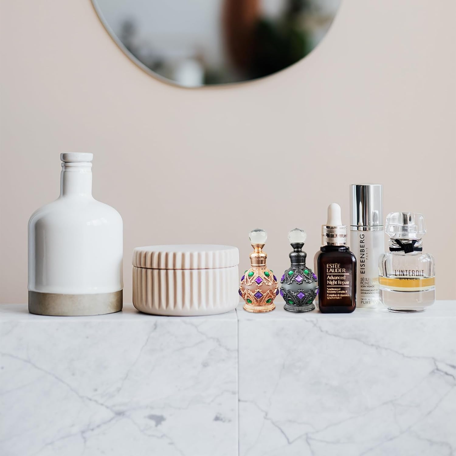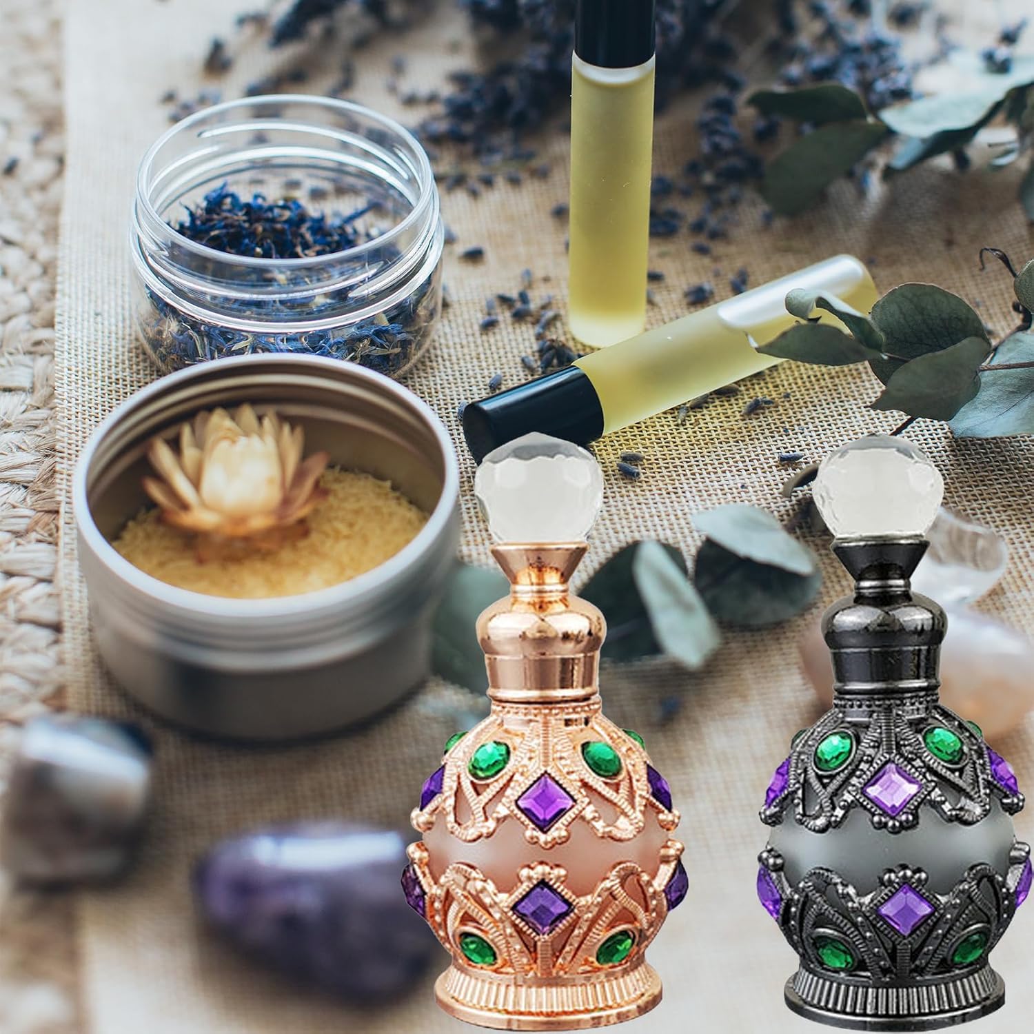 Joyeee Parfumflessen Lege Vintage, 2 Pack 15ml Art Gesneden Kristal Lege Mini Hervulbare Parfumfles, Kerstmis Verjaardagscadeau voor Vrouwen Tieners Familie, Grijs en Rose Goud