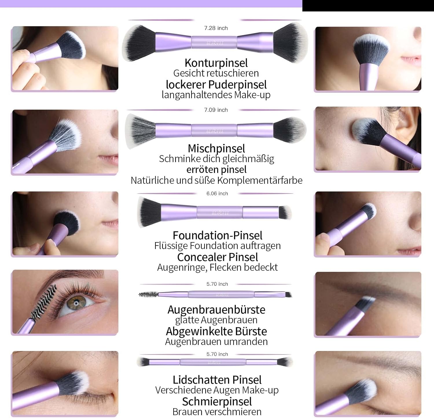 Die Pinsel sind fantastisch und entsprechen genau meiner Vorstellung. Preisleistung stimmen einfach. Sie sind super in der Handhabung, sehr weich auf der Haut und erfüllen meine Ansprüche – sehr empfehlenswert.