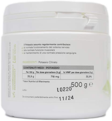 Buon prodotto , si scioglie facilmente ed ha un sapore abbastanza neutro, mi sembra di una buona qualità e anche il prezzo mi sembra conveniente.Ho letto delle recensioni in cui si parla di cattivo sapore, è importante rispettare il corretto rapporto fra prodotto e acqua. Inoltre la dose suggerita è 2gr per giorno.2gr di prodotto corrispondono ad 1/4 dei miei cucchiaini da caffè, io lo sciolgo in poco più di mezzo bicchiere di acqua.Si deve tenere presente che 1gr di citrato di potassio contiene 0,35gr di potassio.L’RDA di potassio è 2gr per le donne e 3gr al giorno per gli uomini, ma comprende anche la normale alimentazione.Si può quindi teoricamente assumerne più dei 2gr suggeriti, ma si deve essere prudenti perchè un eccesso di potassio può anche essere molto pericoloso.Un ultimo suggerimento assumetelo dopo i pasti e bevete subito dopo un poco di acqua per sciaquare, perchè è comunque un acido ed un poco irritante se lasciato li.