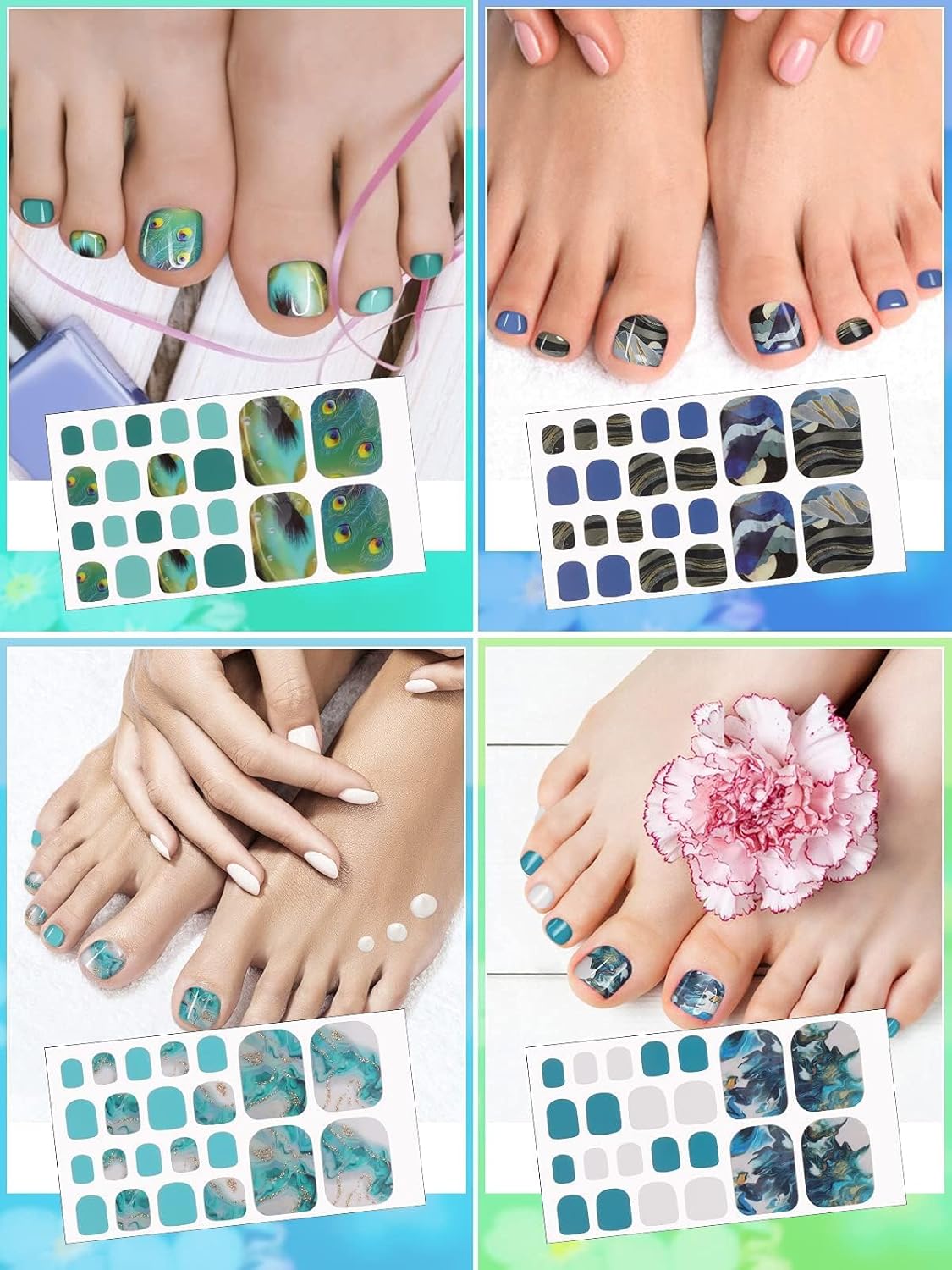 ★ Self-adhesive and long-lasting: toe nail polish stickers are self-adhesive, they can be glued directly to the nails. And not easy to release, the waterproof function helps the shine on your nails last longer.
