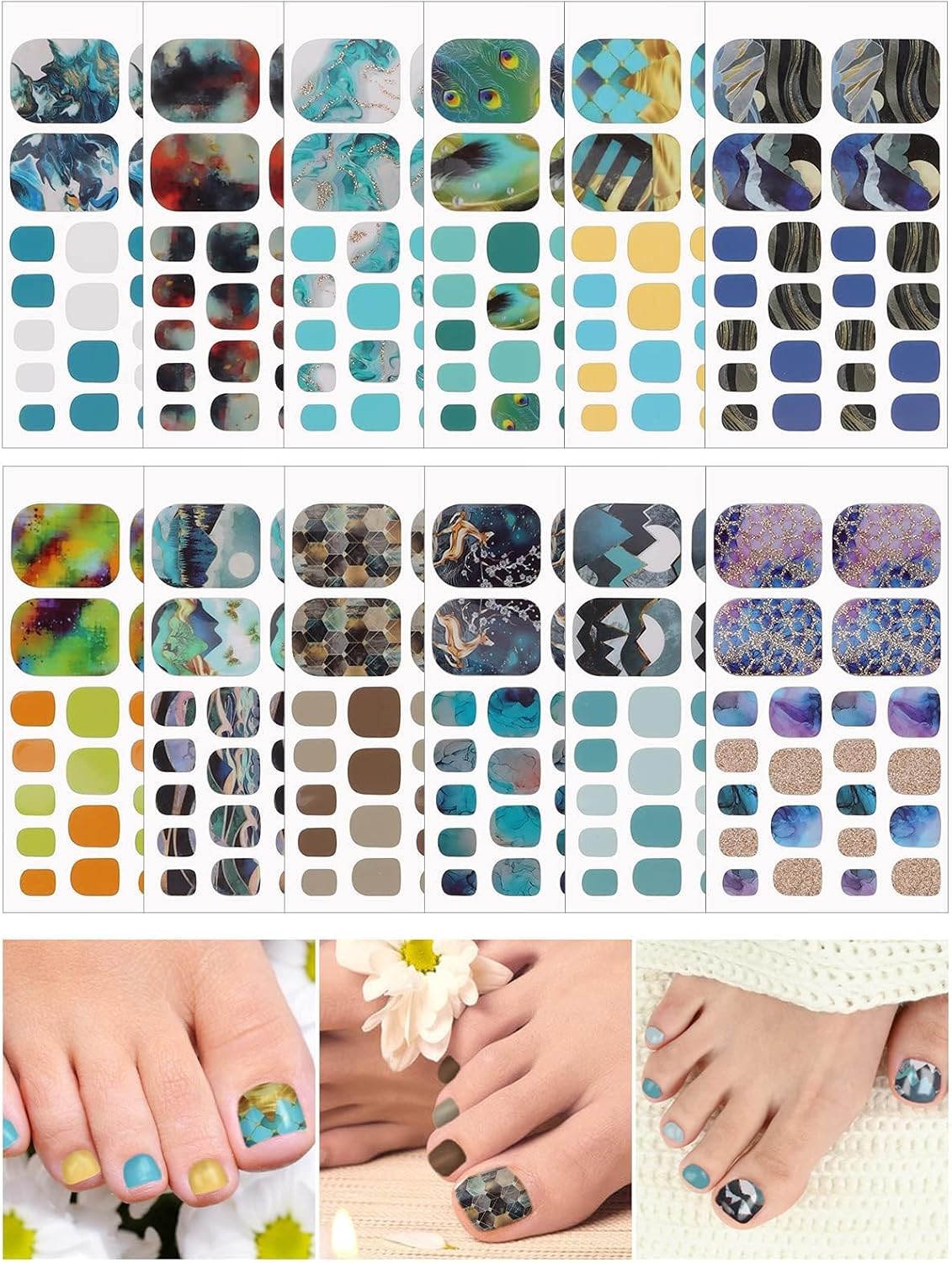 12 Sheets Marble Toenail Full Wraps Nail Stickers