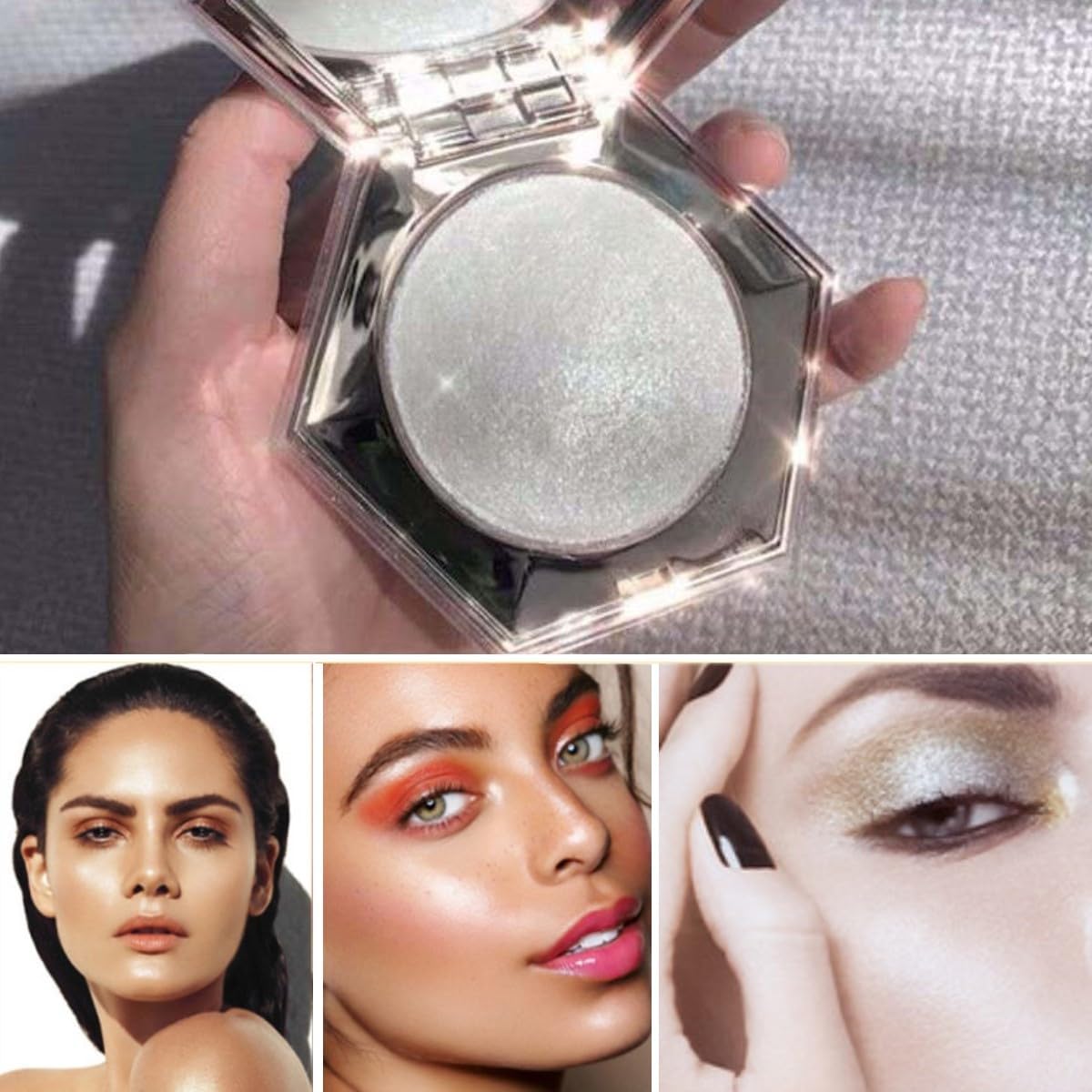 De highlighter voelt glad en delicaat aan als aardappelpuree, past zich gelijkmatig in de huid, vliegt geen poeder, mengt zich gelijkmatig met ultrafijn kleipoeder. Deze highlights zijn in witte diamantkleur, die geschikt zijn voor het verlichten van de lokale huidskleur.