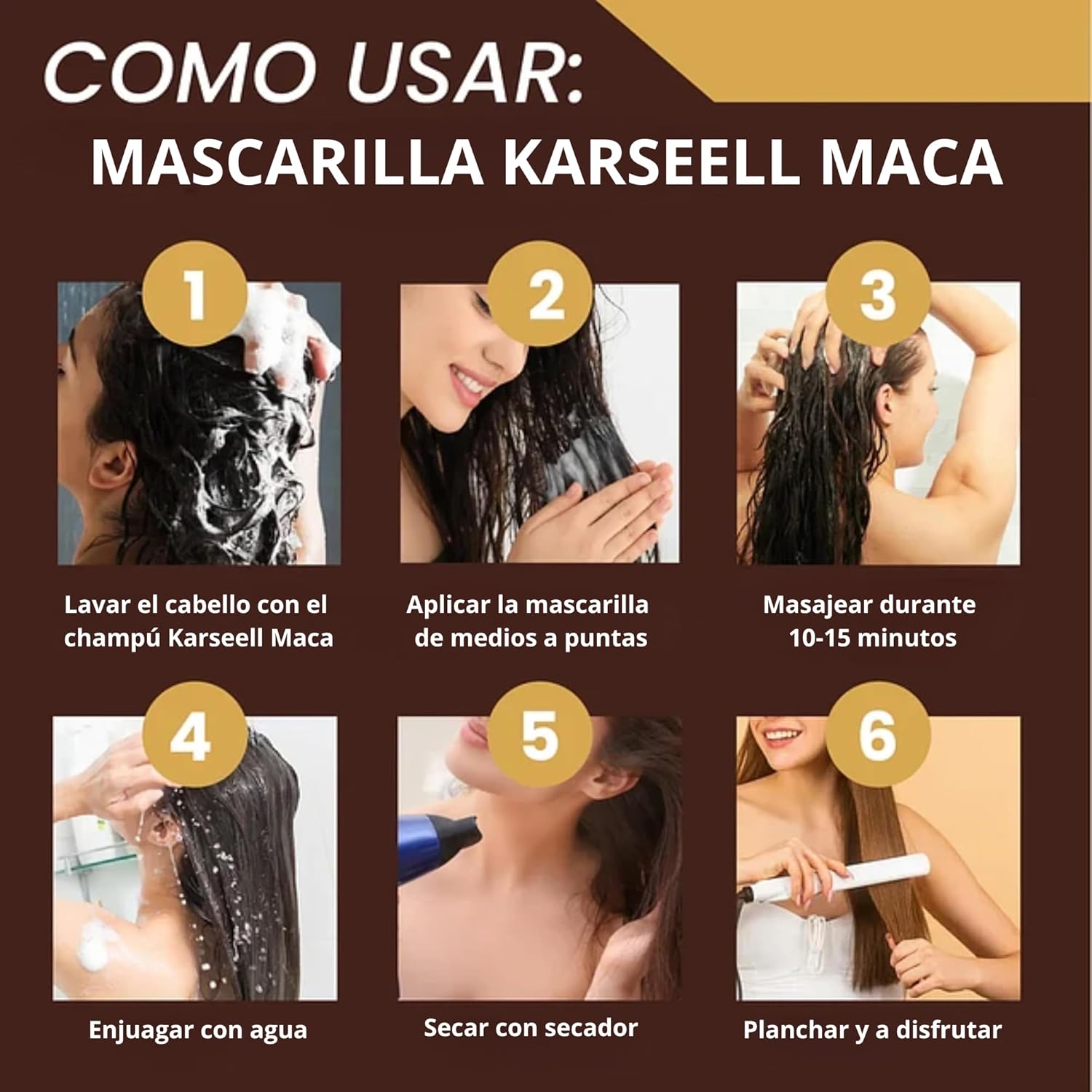 Verpakking bestaande uit 2 eenheden: 1 haarmasker 500 ml. + 1 Arganolie 50 ml. Karseell MACA CARE SYSTEM haarmasker is geformuleerd voor diep haarherstel, verrijkt met collageen, arganolie, maca en natuurlijke kruiden. Het produceert intense hydratatie, dringt door tot in de haarzakjes, waardoor uw haar zacht en glanzend wordt. Het is geschikt voor alle haartypes, inclusief chemisch behandeld en bewerkt haar, gekleurd haar. Natuurlijke ingrediënten zonder parabenen of sulfaten, voeden het haar zonder het te verzwaren. XL-formaat voor een haarbehandeling voor het hele gezin. Het Marokkaanse Arganolie Serum 50ml. Het is de perfecte combinatie om gezond, glanzend en gehydrateerd haar te verkrijgen, verjongt de huid en voorkomt broze nagels. Pakket aangewezen voor droog en beschadigd haar: combineer de werking van het masker met het arganolieserum om een optimaal resultaat te verkrijgen. Voortgezet gebruik wordt aanbevolen.
