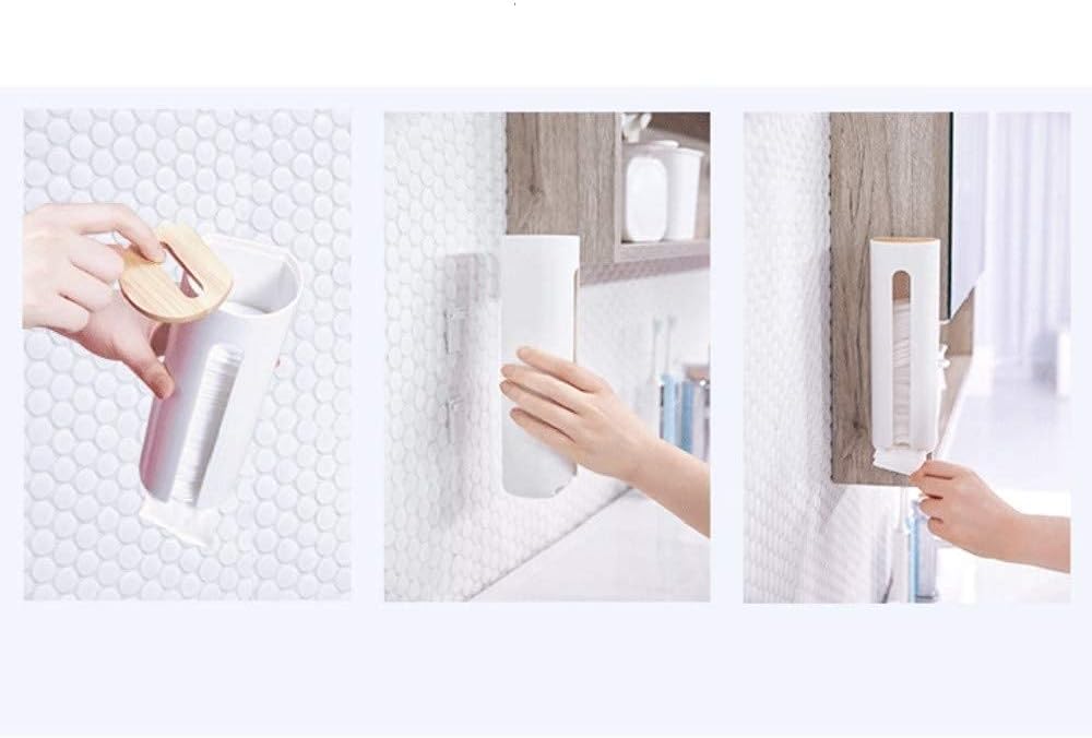 De FemKey make-up organizer heeft hoogwaardige waterdichte lijm voor wandmontage en kan op elk glad oppervlak worden aangebracht. Bespaar ruimte en verbeter het gebruik van de ruimte. Je kunt de reinigingswatten van boven leggen en van onderen eruit trekken voor gebruik. Het is zeer eenvoudig, comfortabel en snel. Je kunt ook handschoenen, servetten, wegwerpzakken enz. opbergen.