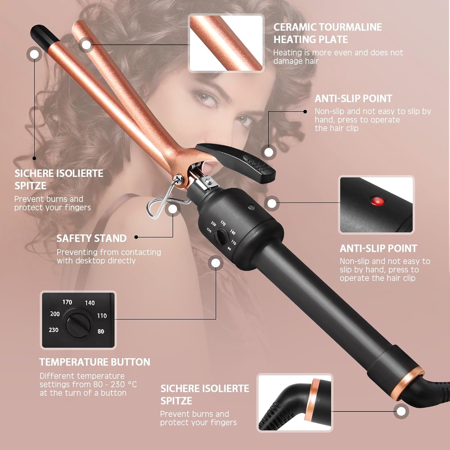 Temperatuurinstelling: de kleine krultang met instelbare temperatuur van 80-230 °C is een ideale krultang voor verschillende haartypes. Draai gewoon aan de knop, je kunt de temperatuur naar wens instellen. De automatische uitschakeling na 1 uur en het anti-verbrandingsontwerp bevestigen dat je veilig genoeg bent.