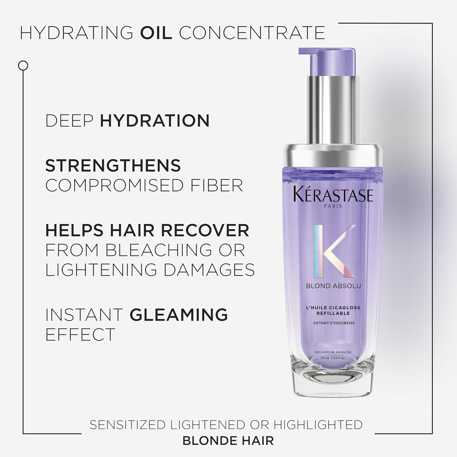Kérastase Blond Absolu, L’Huile Cicagloss, Navulbare Herstellende Haarolie, Met Edelweiss, Voor Gevoelig Geworden, Gehighlight of Ontkleurd Blond Haar, 75 ml