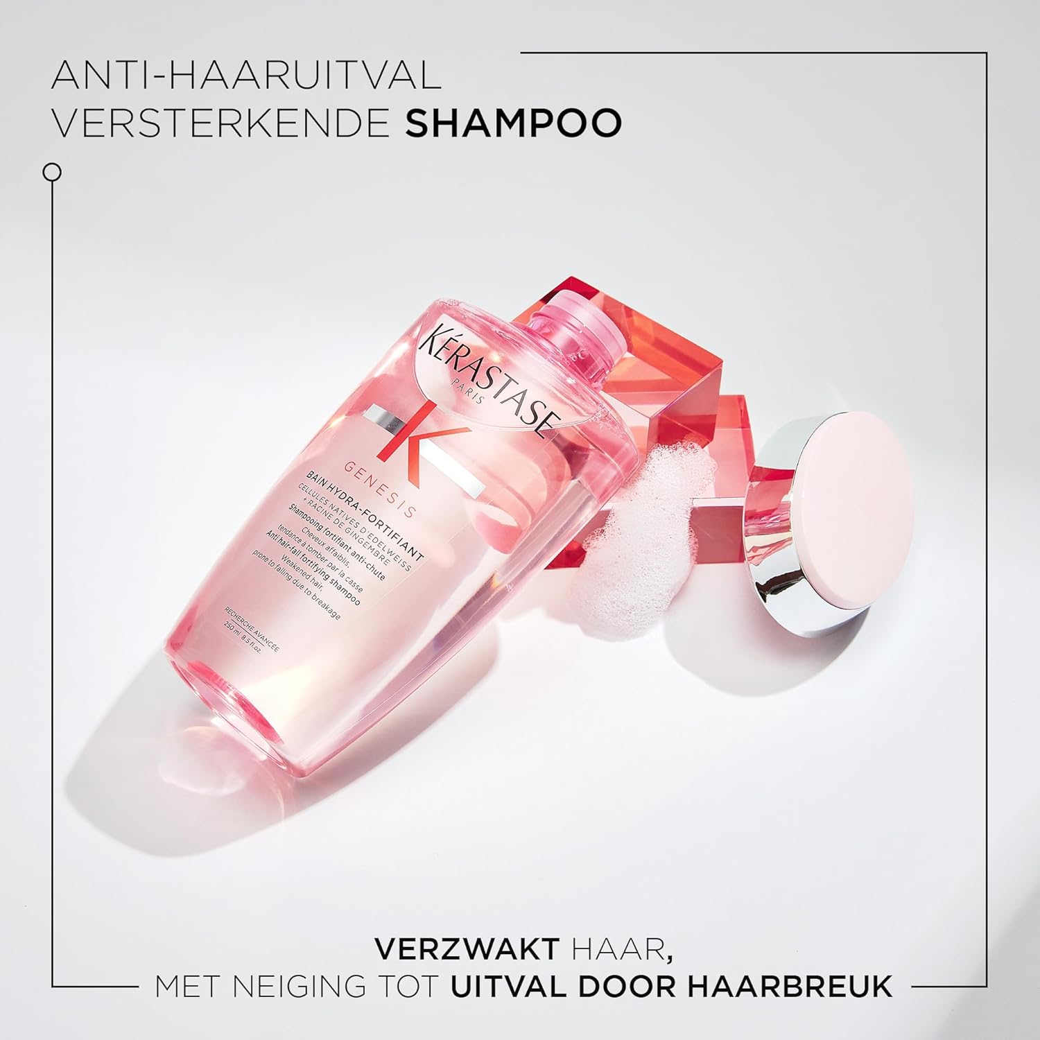 Kérastase Genesis, Bain Hydra-Fortifiant, Voedende en Versterkende Shampoo, Met Gemberwortel en Edelweissbloem, Voor Verzwakt Haar, Anti-Haaruitval, 250 ml