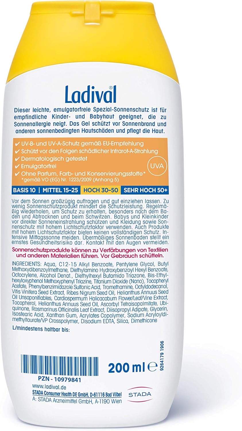 Ladival es una marca de confianza, especialmente indicada por su altísima protección frente a los peligrosa radiación solar UV en el caso de aquellas personas que tienen la piel muy delicada como es el caso de la piel atópica, aquella que resulta afectada por infinidad agresiones tanto de químicos, erosiones, alimentación, frio, calor, sudor y exposición solar, entre otras muchos daños a lo que se exponen estas pieles tan sufridas.En el caso de la protección solar factor 50 plus de esta marca, aunque más cara que la media, su precio lo vale con creces, ya que en su composición cuidan muy mucho, que los componentes sean lo menos agresivos con la piel, al tiempo que demuestran una eficacia superior a la gran mayoría de protectores, dando una cubierta extra que sin ser pegajosa, resulta resistente al agua de mar, a la arena de la playa y a la abrasiones del ejercicio, durando bastante horas (esto en función del grado de bronceado que se haya adquirido). Merece las cinco estrellas.