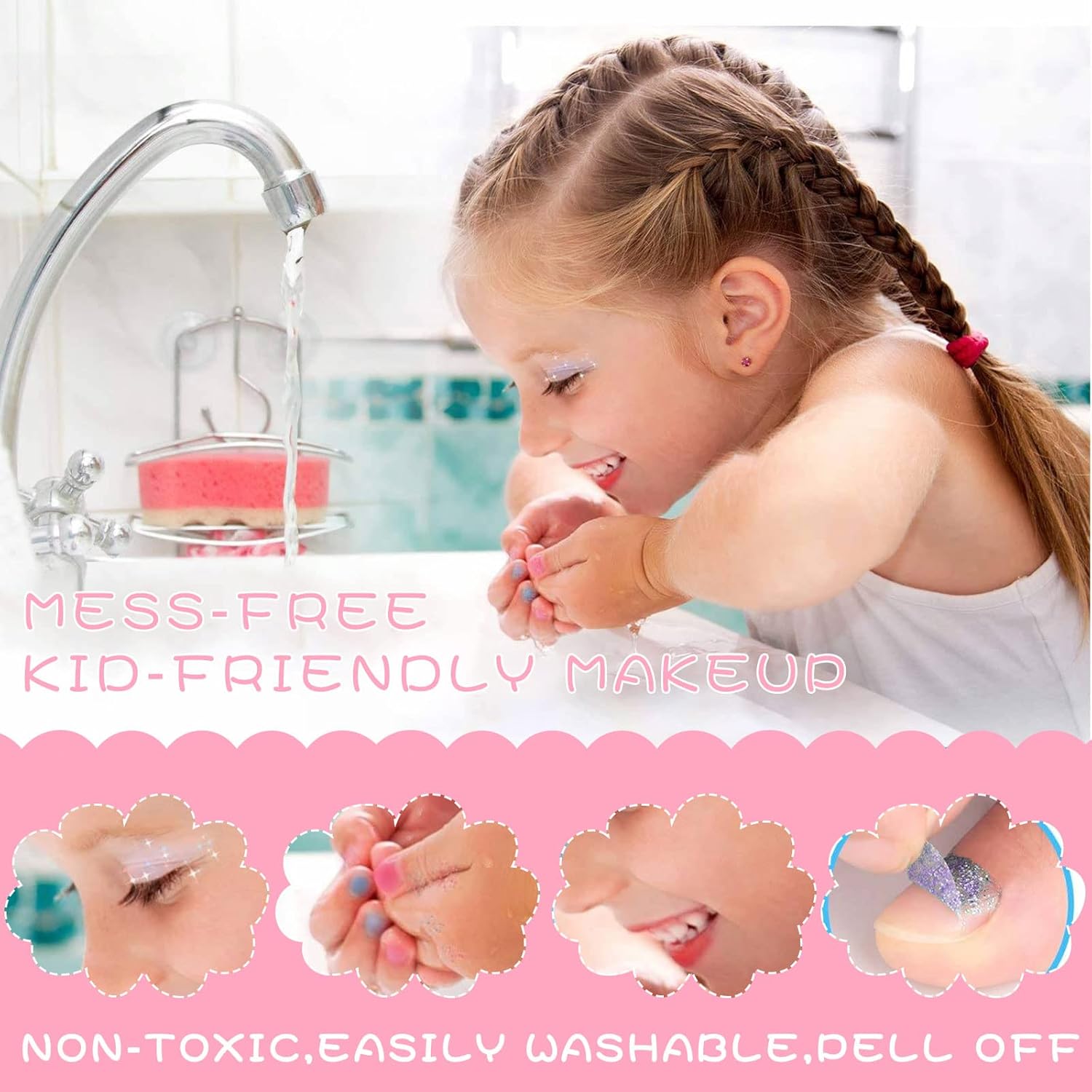 🌸【Veilig en wasbaar】: de make-upkoffer voor meisjes is gemaakt van een veilige, goed in water oplosbare stof, die wasbaar, niet giftig en geschikt is voor een gladde huid, wasbare cosmetica speciaal voor de zachte kinderhuid