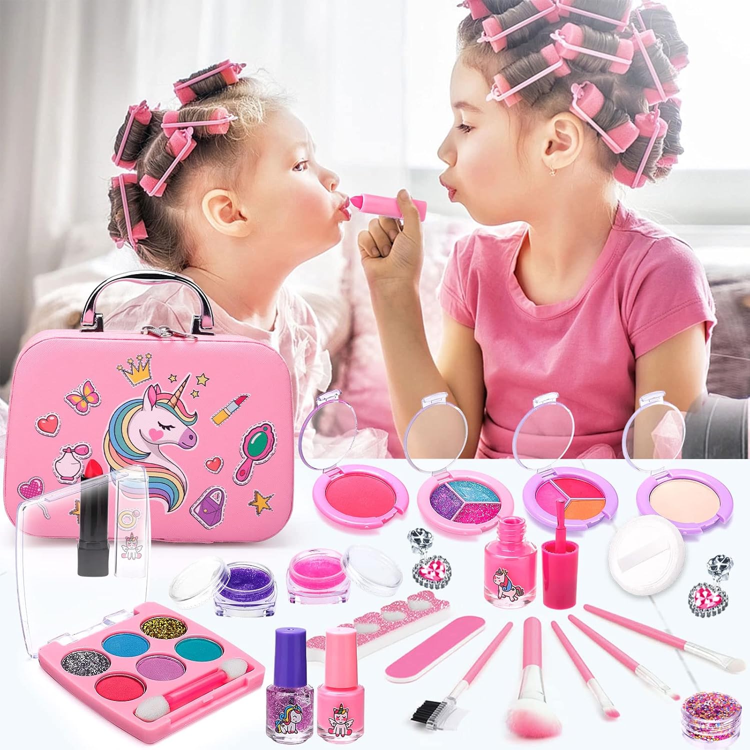 Kinderschminkset voor meisjes, wasbaar make-upspeelgoed voor meisjes en kinderen, meisjes, make-upset, rollenspel, cadeau voor meisjes van 4, 5, 6, 7, 8, 9 jaar, kerstcadeau, 30 stuks