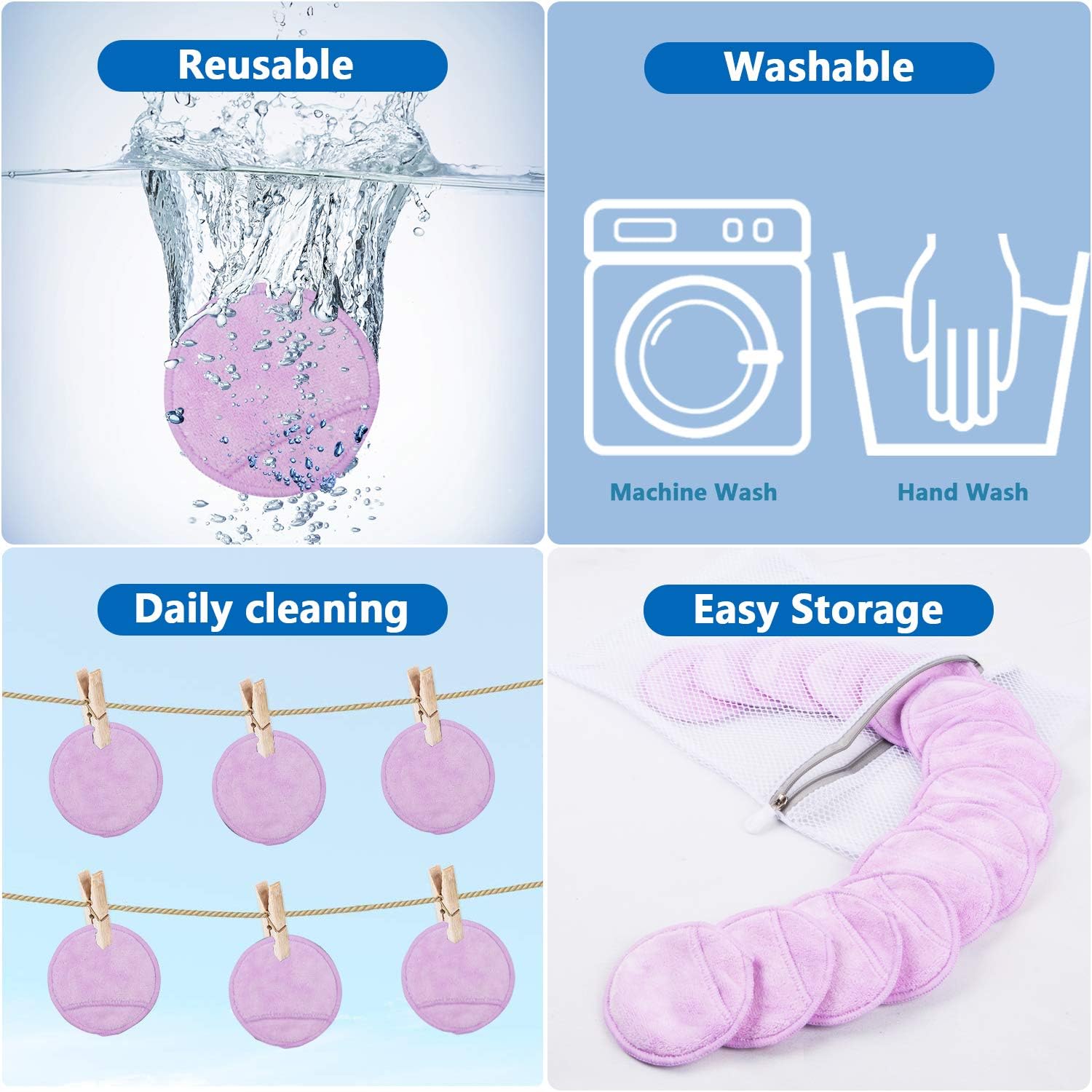 KinHwa 14 Pack Make-up Remover Pads Herbruikbare Microvezel Ronde Gezichtspads voor Gezicht Ogen Lippen Wasbare Gezichtsdoeken voor Alle Huidtypes Lichtpaars