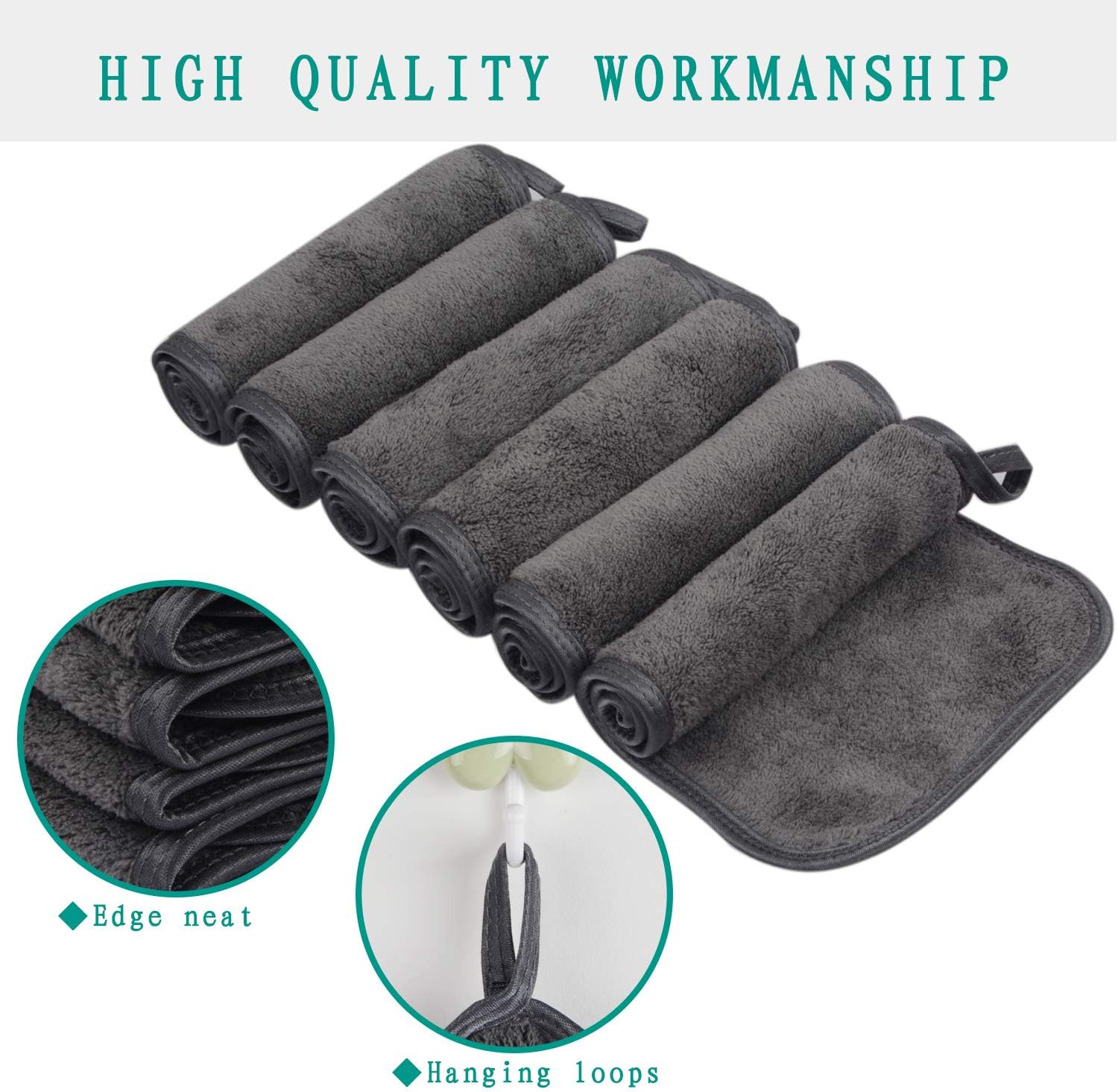 KinHwa Herbruikbare Make-up Remover Doek Microvezel Gezichtsreinigingsdoekjes Ultrazachte washandjes met alleen water 15cmx30cm 6 stuks – Donkergrijs