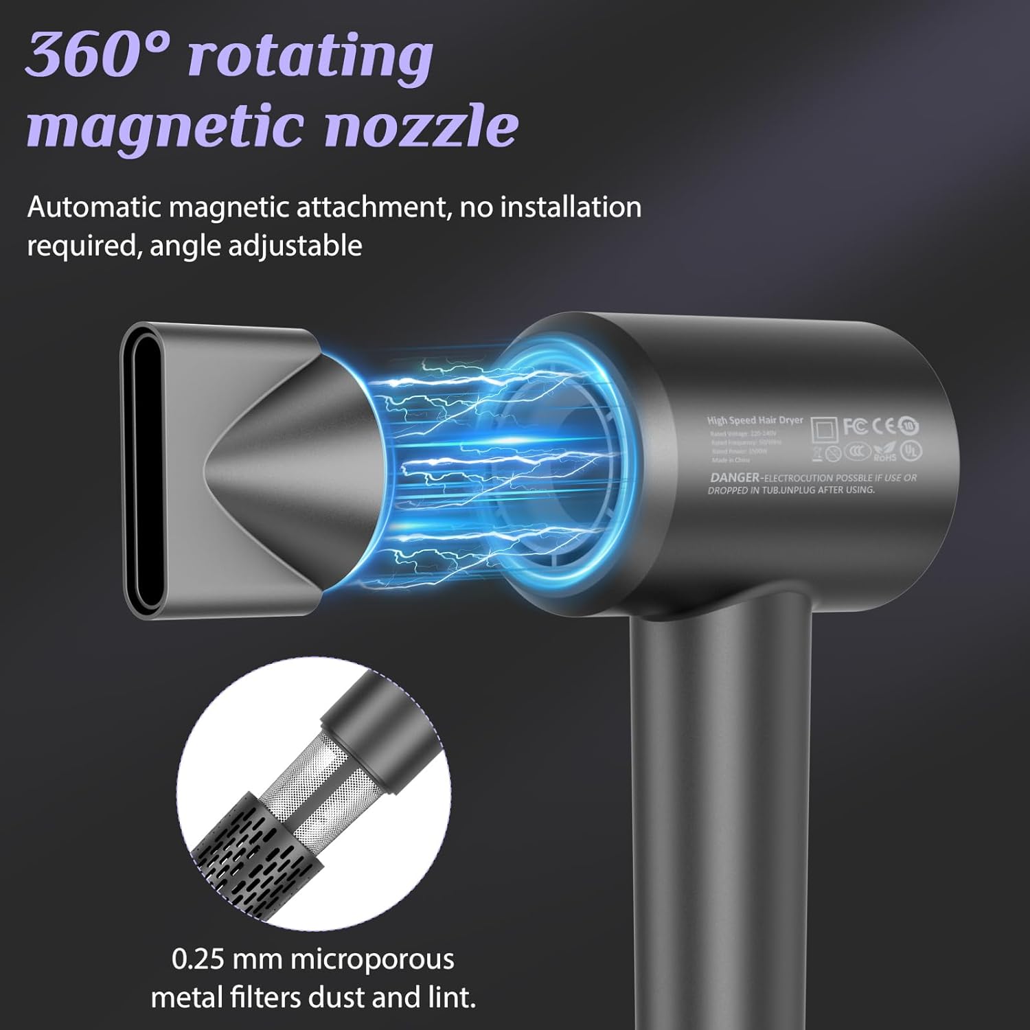 J’ai testé ce sèche-cheveux et il dépasse mes attentes ! Avec ses 200 millions d’ions négatifs, il laisse mes cheveux brillants et sans frisottis, tout en réduisant l’électricité statique. Le moteur puissant de 110 000 tr/min permet un séchage rapide, ce qui est parfait pour les matins pressés.Ce que j’apprécie particulièrement, c’est la faible nuisance sonore (seulement 30 dB), ce qui rend l’utilisation beaucoup plus agréable, surtout si vous aimez faire attention au bruit. Le diffuseur magnétique à 360 degrés est pratique et facile à ajuster, idéal pour donner du volume ou définir les boucles.En plus de sa performance, le design est moderne et élégant. Ce sèche-cheveux combine efficacité, confort et silence, ce qui en fait un excellent choix pour ceux qui cherchent à obtenir un séchage rapide sans sacrifier la qualité. Un très bon rapport qualité/prix pour un sèche-cheveux performant.