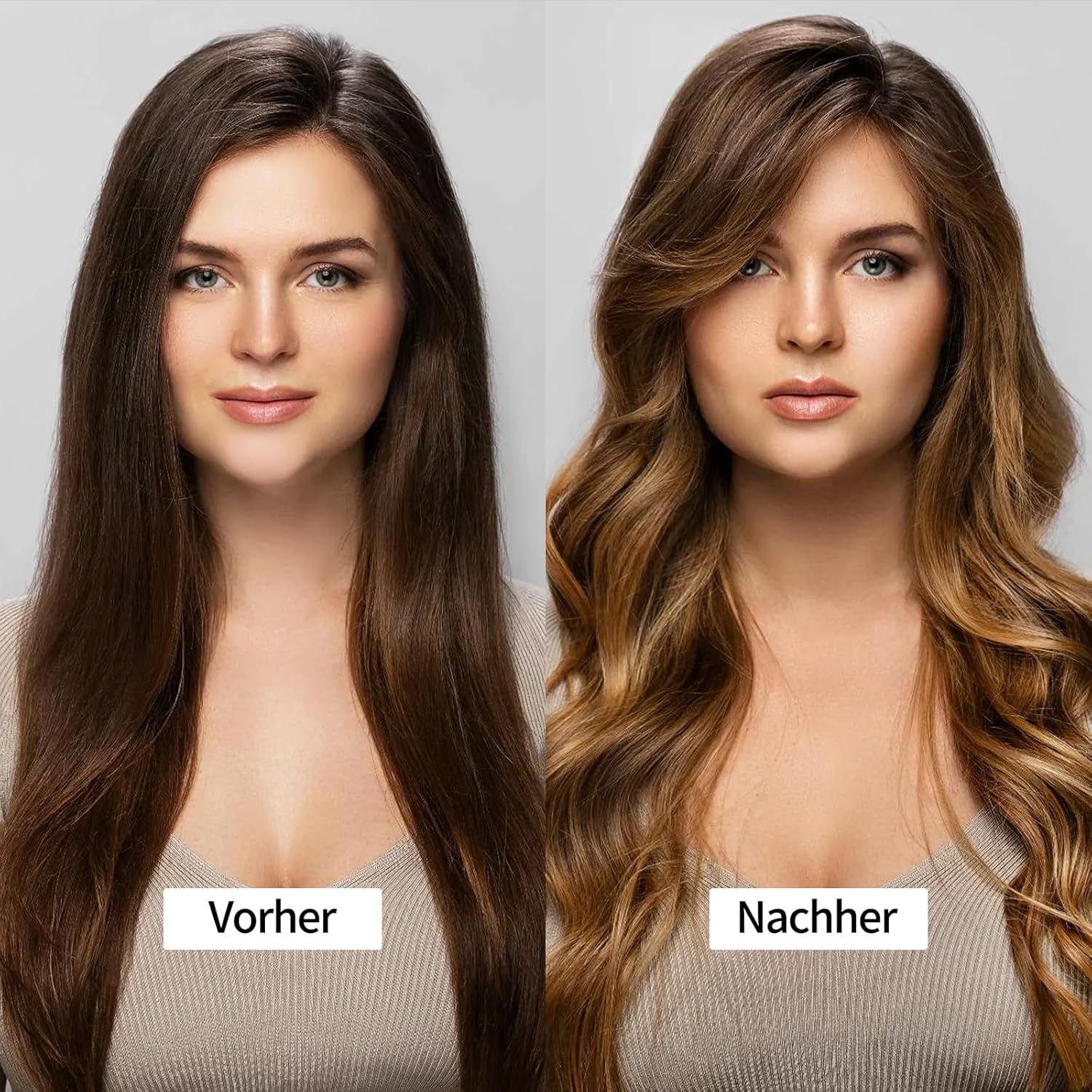 Makkelijker in gebruik: wikkel je haar direct om de krultang en kam het vervolgens naar beneden om losse krullen te krijgen. Er is geen speciale krulvaardigheid nodig. Onze krulborstel met 110V -220V WERELDWIJDE SPANNING