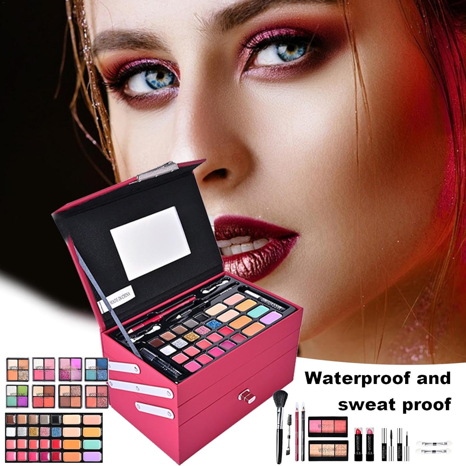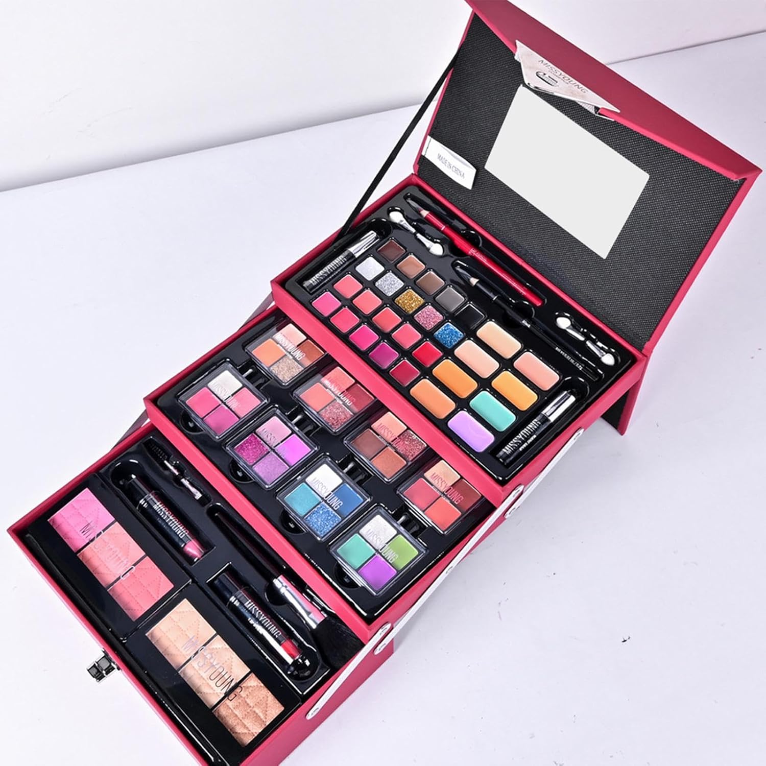Uitgebreide make-upcollectie: deze alles-in-één make-upkit is zorgvuldig samengesteld om tegemoet te komen aan elk aspect van een complete make-uproutine. Het bevat noodzakelijke producten, zoals foundation, concealers, oogschaduw in verschillende tinten, blozen, lippenstiften, eyeliners, mascara’s en make-upborstels – allemaal ontworpen om moeiteloos de natuurlijke schoonheid te verbeteren of dramatische looks te creëren.