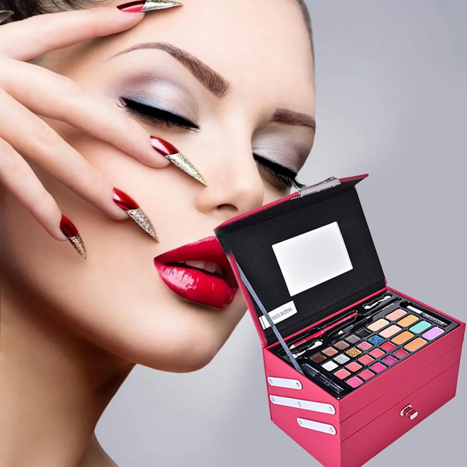 Beschrijvingen; De volledige make-upkit voor vrouwen en meisjes uitgebreide collectie cosmetica en hulpmiddelen die nodig zijn voor volledige make-uproutine. Van foundation tot oogschaduw, lippenstift tot borstels, deze set zorgt voor veelzijdigheid en kwaliteit met zijn assortiment hoogwaardige formuleringen en professionele applicators. Verpakt in een elegant etui, het is perfect om cadeau te doen bij speciale gelegenheden, waardoor het een luxe en handige make-upervaring biedt, waar je ook gaat. voor zowel beginners als make-upliefhebbers, het bindt een soepele applicatie, langdurige slijtage en de mogelijkheid om moeiteloos een verscheidenheid aan prachtige looks te creëren.