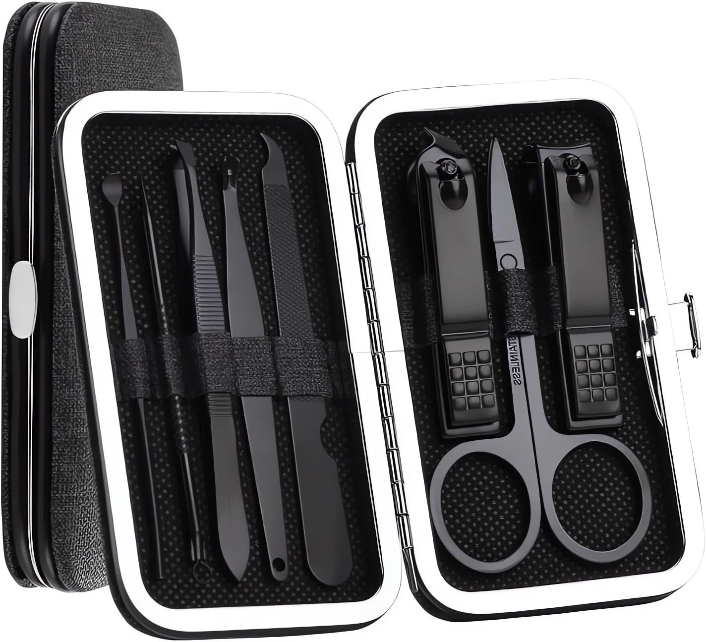 Hallo zusammen. Für Verreisen haben diesen Maniküren Set gekauft. Das Etui ist sehr schick und kompakt gemacht. Es lässt sich sehr leicht aufmachen und liegt alles ordentlich zusammen, nimmt kaum Platz, wiegt nichts und man hat wirklich alles dabei.Mit Nagelknipsern kann man perfekt die Nagellänge anpassen. Beim Schneiden rutschen die Finger nicht ab. Sie sind wirklich einfach beim Nutzen. Wer Probleme mit eingewachsenem Nagel hat, kann dies Set auch empfehlen.Die Pinzette entfernt lästige Haare oder schmerzhafte Splitter. Den Ohrlöffel haben wir zum ersten Mal ausprobiert und ganz davon angetan. Es ist beim Reisen viel praktischer und nachhaltig.Im Großem und Ganzen das Set ist toll. Ich behalte ihn sogar in meiner Handtasche.