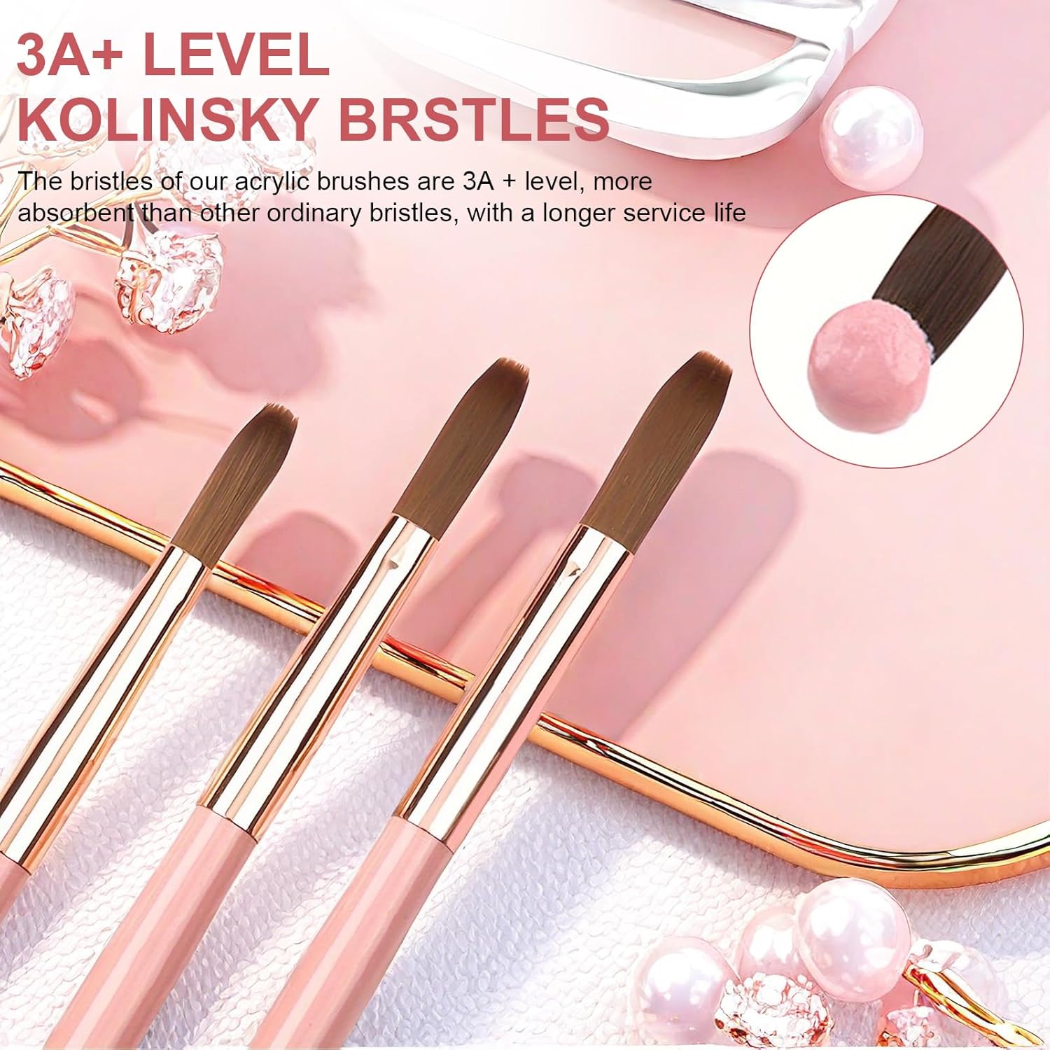 Premium Kolinsky borstels: gemaakt van pure Kolinsky borstelharen en verdikte koperen buizen, onze acryl nagelborstelset zorgt voor een superieure kwaliteit en duurzaamheid, waarbij een uitstekende vloeibare absorptie voor naadloos gebruik van acrylpoeder en vloeistof zorgt.