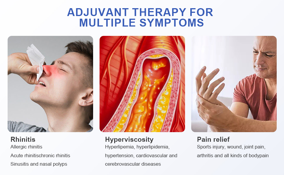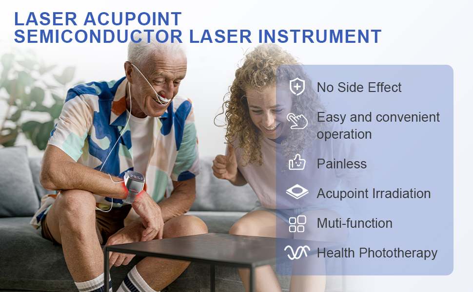 Intelligente bediening: intelligente tijd- en vermogensinstelling, 2 gebruiksmodi – polshorloge, hoofd van de neusholte. Polshorlogemodus – acupunctuurpunten voor de hand; neusholte – geschikt voor problemen met rhinitis. Kies de juiste tijd en intensiteit van de therapie op basis van de toestand van je lichaam.