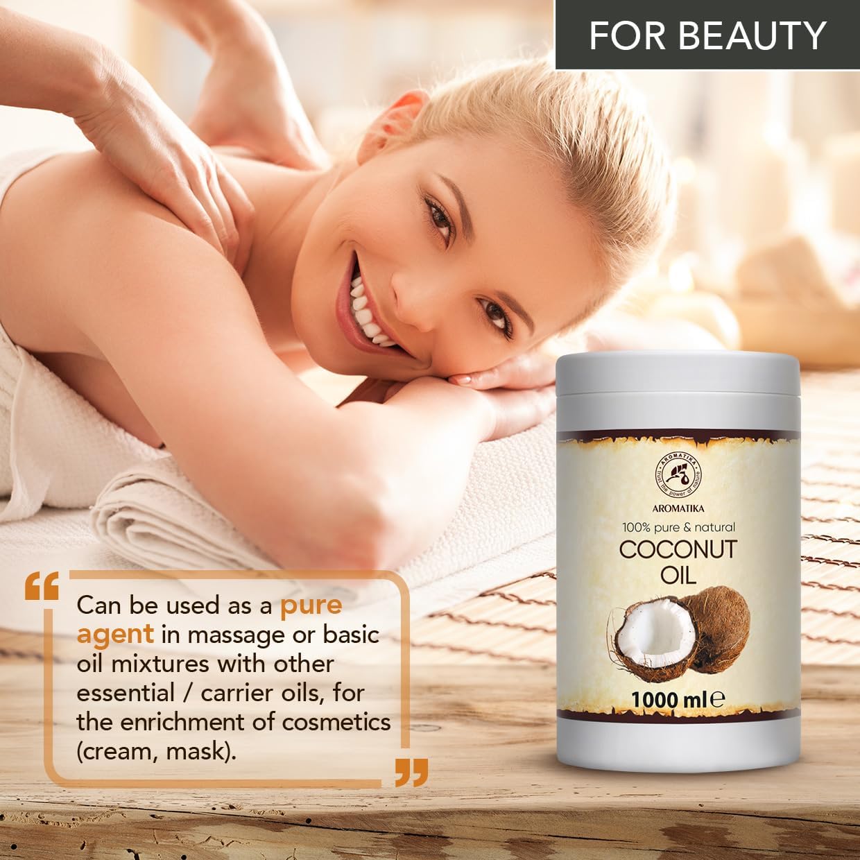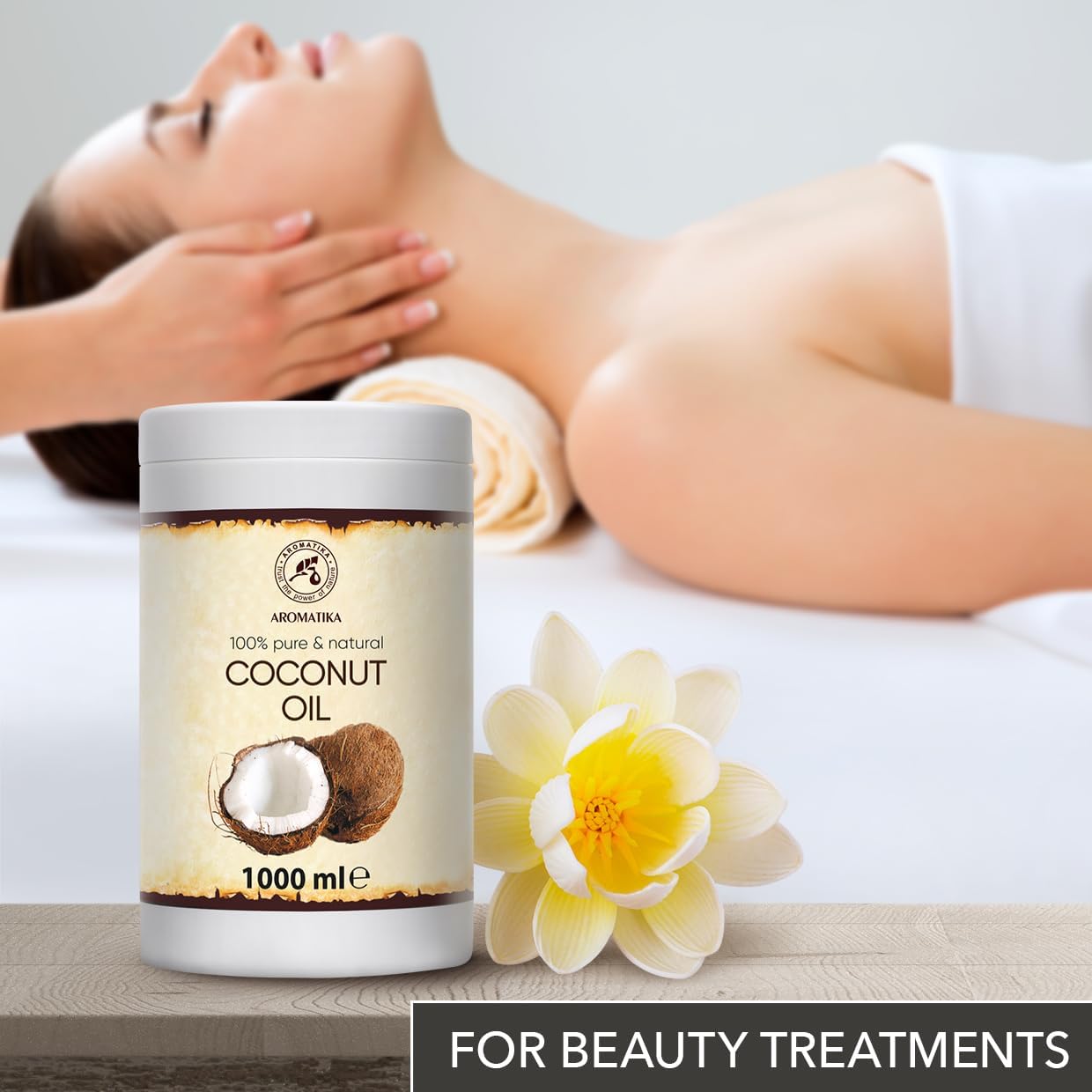 Koudgeperste Kokosolie 1000ml – 100% Puur Natuurlijke Lichaamsboter – Rijk aan Mineralen & Vitamines voor Intensieve Huidverzorging – Massage – Wellness – Cosmetica – Ontspanning – Anti-Rimpels – Anti-Aging – Hydrateert – Vochtinbrengend