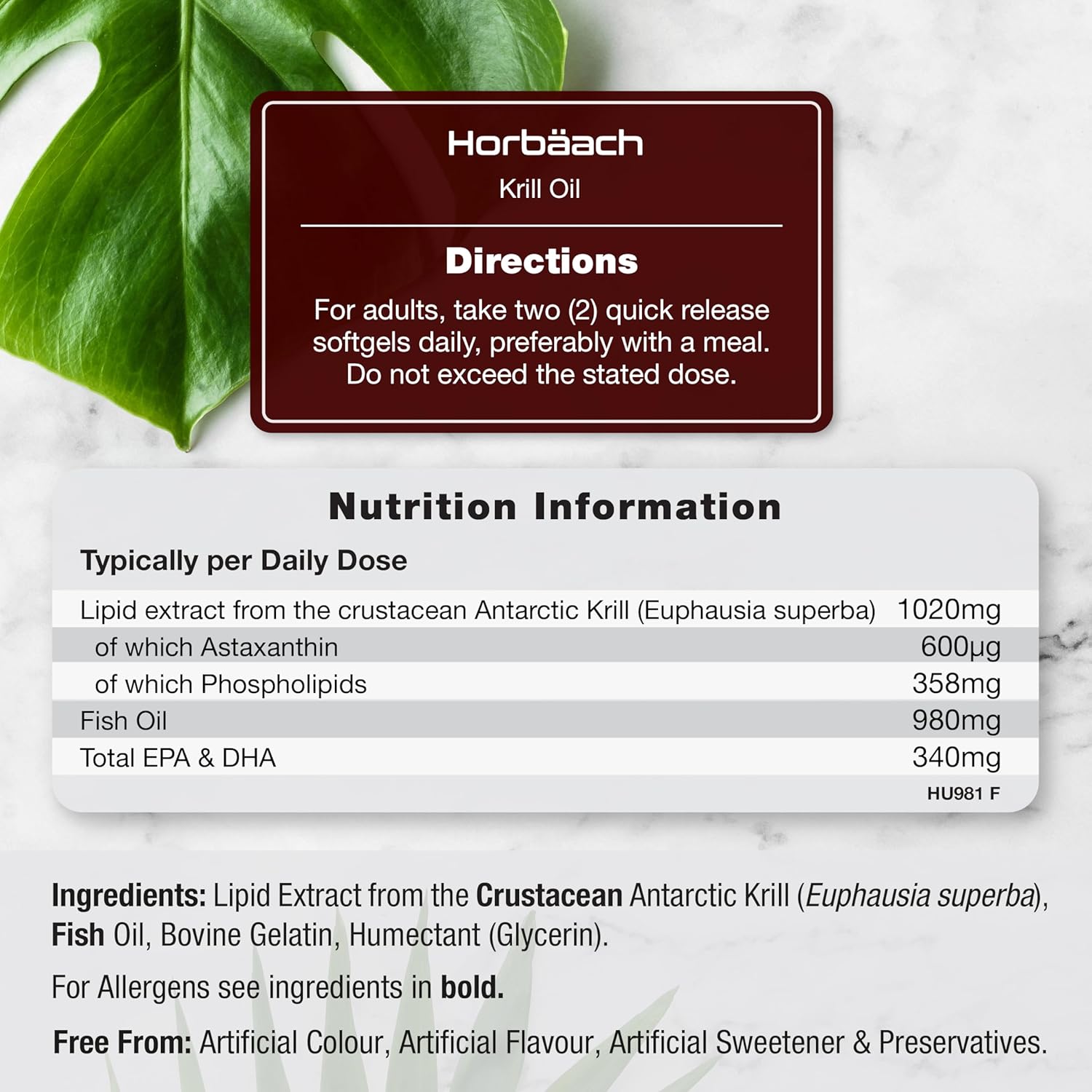 Krill Olie Capsules 2000mg met DHA, EPA en Astaxanthine | Antarctische Krillolie met Belangrijke Omega 3 Vetzuren | Horbaach