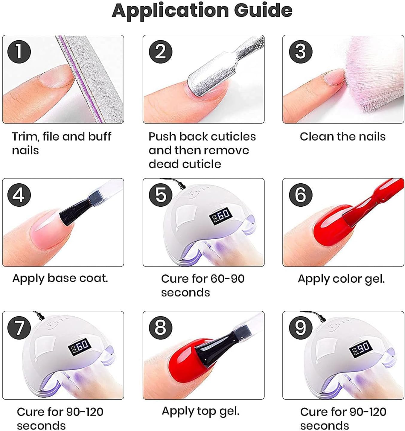 Easy to use and good shelf life: the UV gel nail polish series lasts 21+ days with perfect shine with proper use. With base gel topcoat under full use process. High durability and intense pigmentation make it longer and provides a brilliant shine.