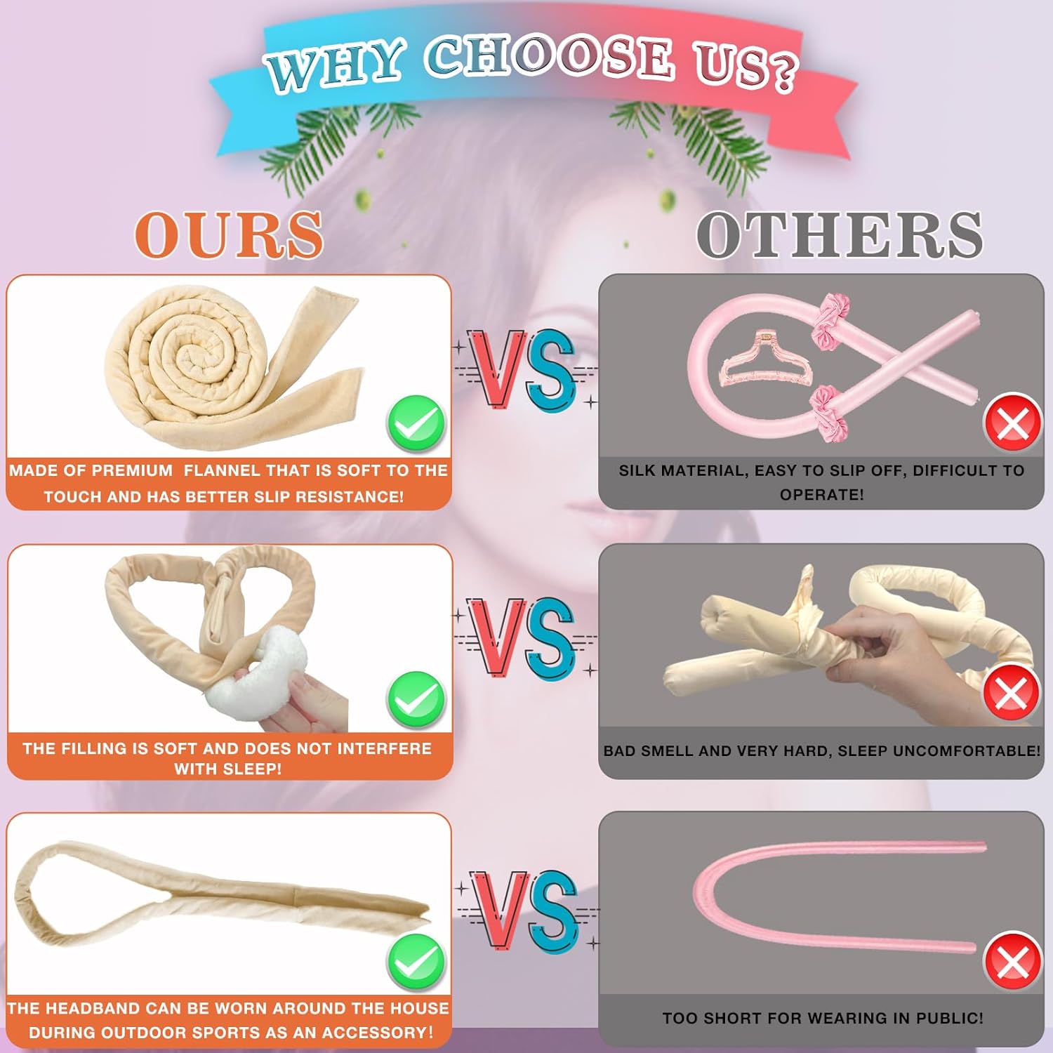 【Verbeterd materiaal】: Onze hoofdband voor ‘s nachts hittevrije krullen is gemaakt van zacht velours, dat niet gemakkelijk vervormt en geen chemische geur heeft. Onze krulspelden zijn gevuld met katoenen vulling om je tijdens het slapen direct kussen te bieden. Je zult dus geen “knarsen” horen als je je hoofd op het kussen legt. Met onze krulspelden zonder hitte kun je nu eindelijk prachtige Heatless Waves ‘s nachts bereiken.