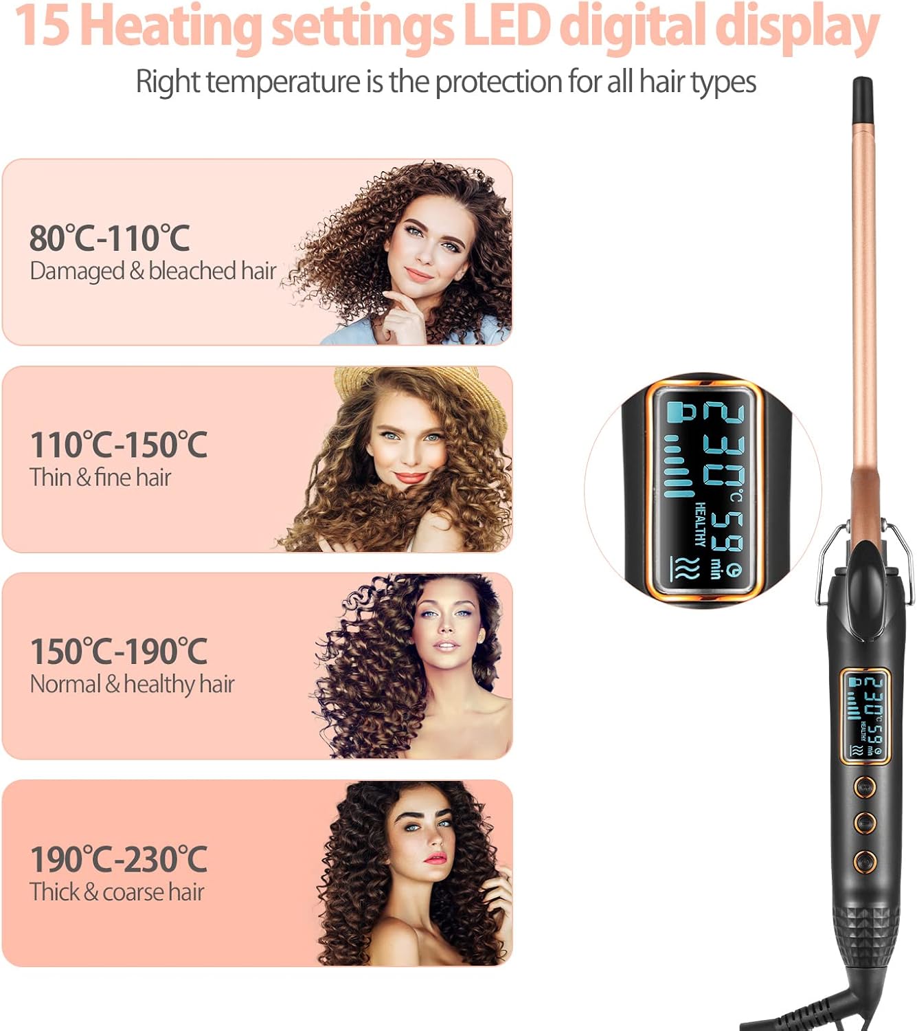 Krulstokken 3/8 Inch, Haglater Kleine Curling Tong 9 mm Dunne Krultang voor Kort & Lang Haar, Keramische Vat Krultang met Verstelbare Temperatuur