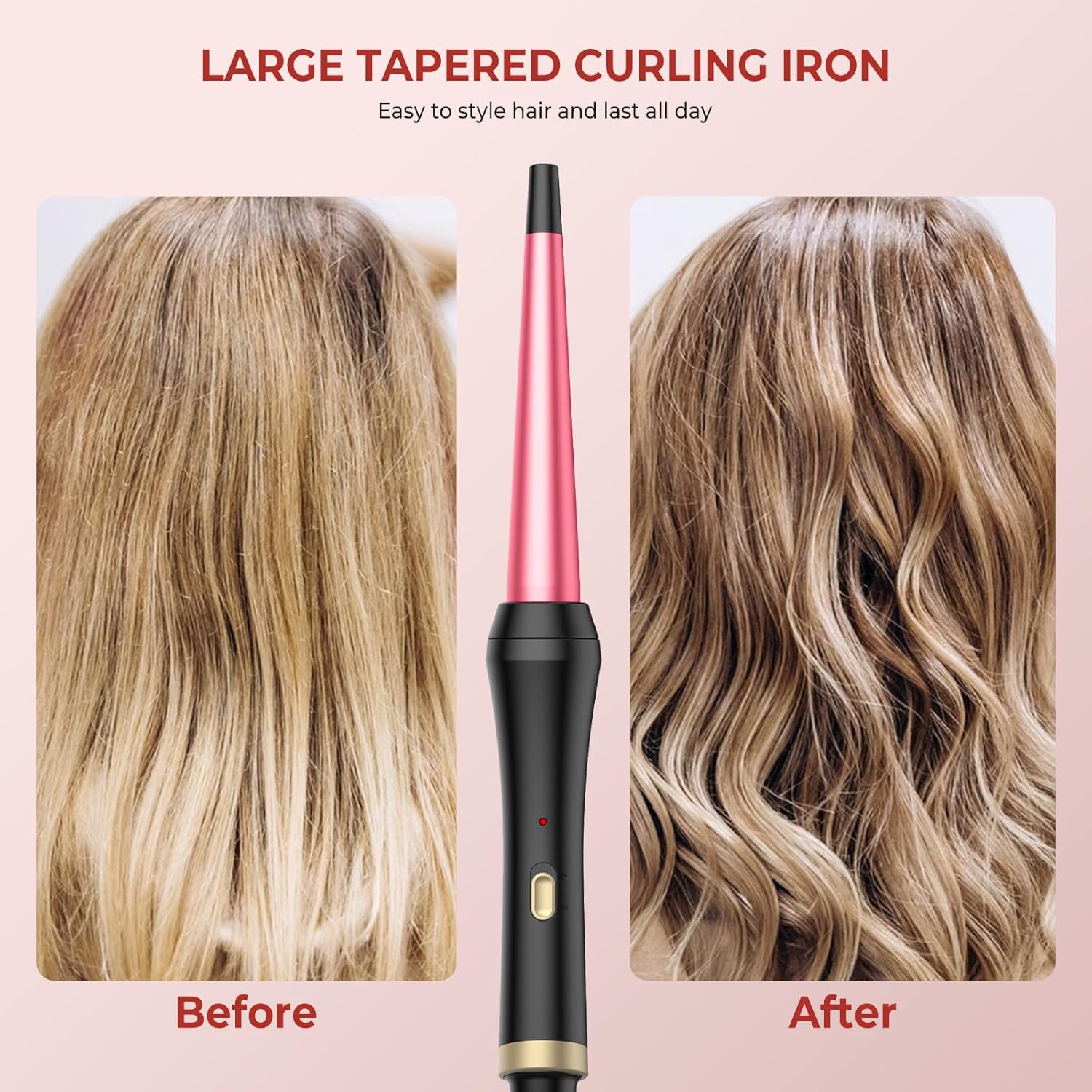 13-25 mm conisch toelopende krultang: Krultang met taps toelopende schacht van 13 mm tot 25 mm voor stevigere tot losse krullen. De krultang helpt om in een handomdraai verende krullen of losse krullen te creëren. Zonder klemmen, zonder knikken en vouwen.