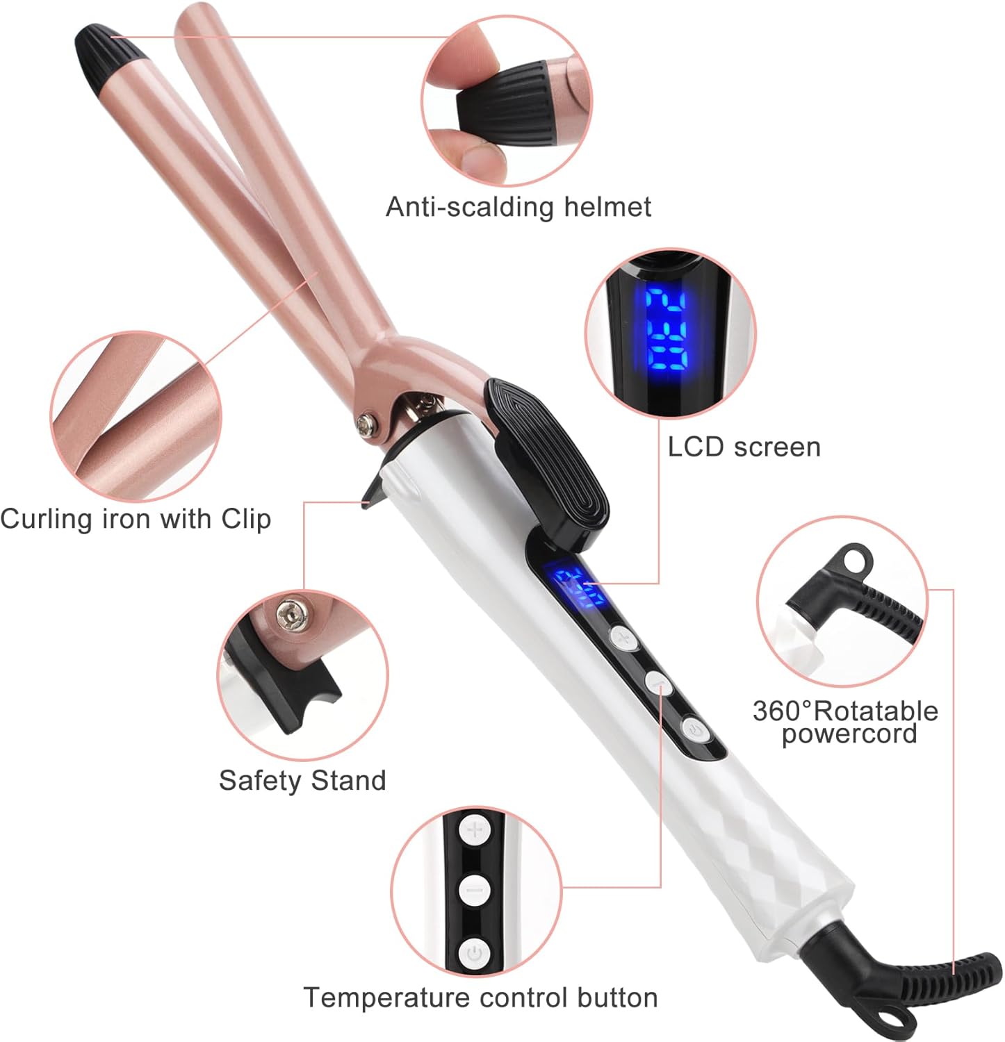 Krultang 19mm Professionele Keramische Haar Krultang met clip voor Korte tot Lange Haar Styler Krultang, Digitaal display, Haar Krultang Wand met Handschoen, Dual Voltage