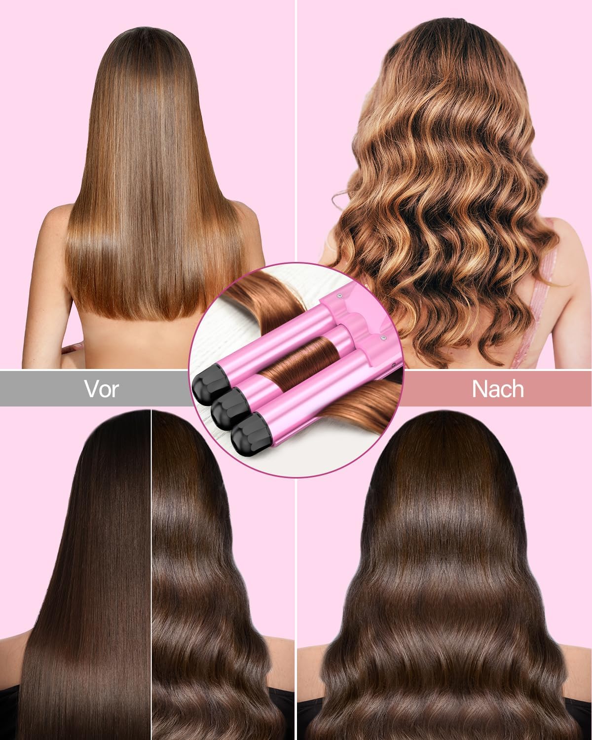 Beste cadeau voor het gezin: de prachtige krultang met 3 cilinders is perfect voor familieleden, vriendinnen en dochters. De set wordt geleverd met een geïsoleerde handschoen voor betere bescherming.