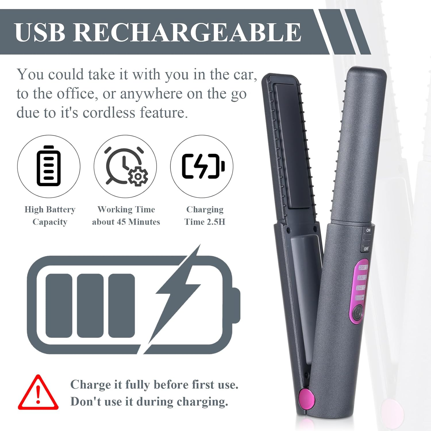 Krultang, draagbaar, draadloos, oplaadbaar, voor het gladmaken van het haar