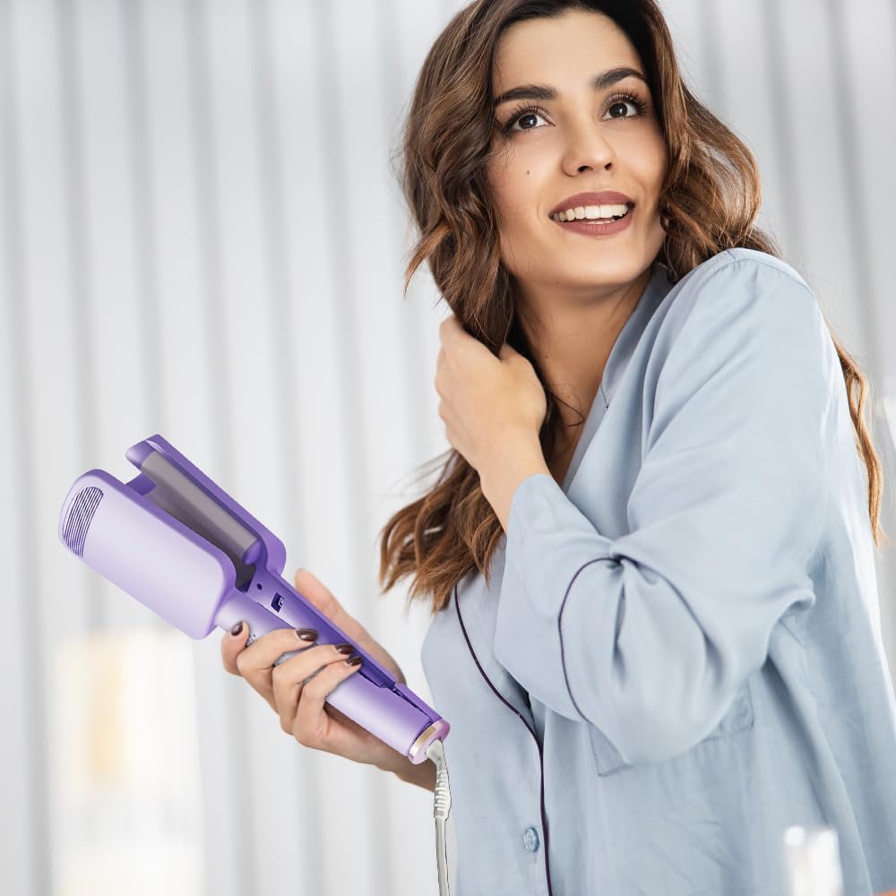 Krultang met 2 golven, 32 mm, 4 instelbare temperaturen, grote krulspelden, Peli-krulspelden van keramiek (paars)