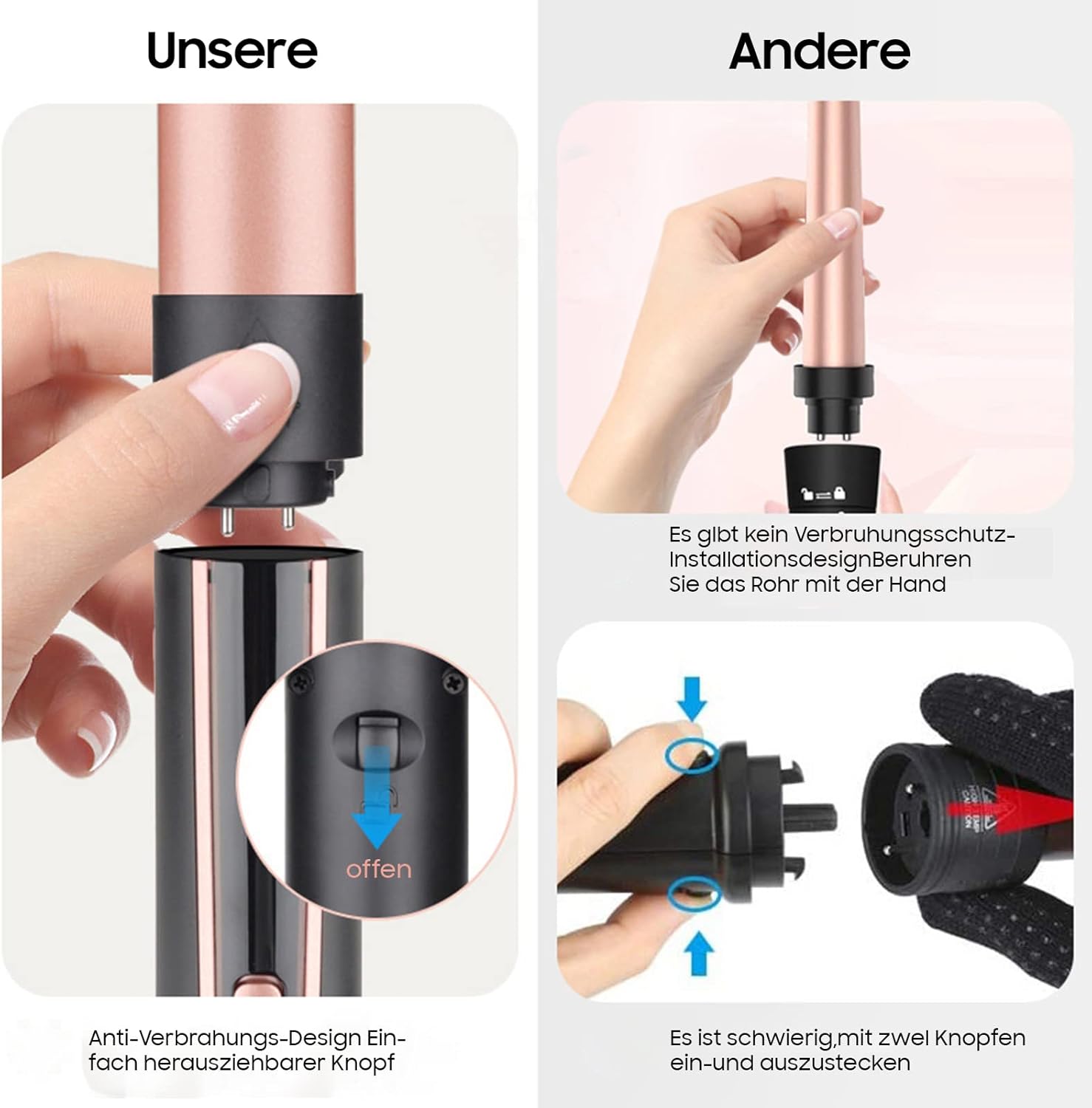 Multifunctioneel: eenvoudig te vervangen: krulspelden met verschillende accessoires, eenvoudig te installeren. Uittrekbaar knopontwerp, comfortabel voor gebruik. De stekkerbuis heeft een zelfvergrendelingsfunctie, veiliger te gebruiken.